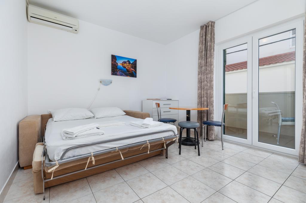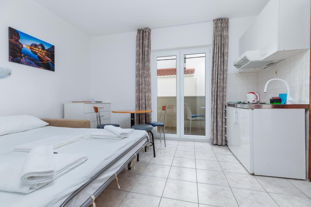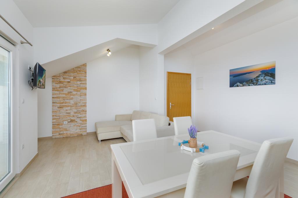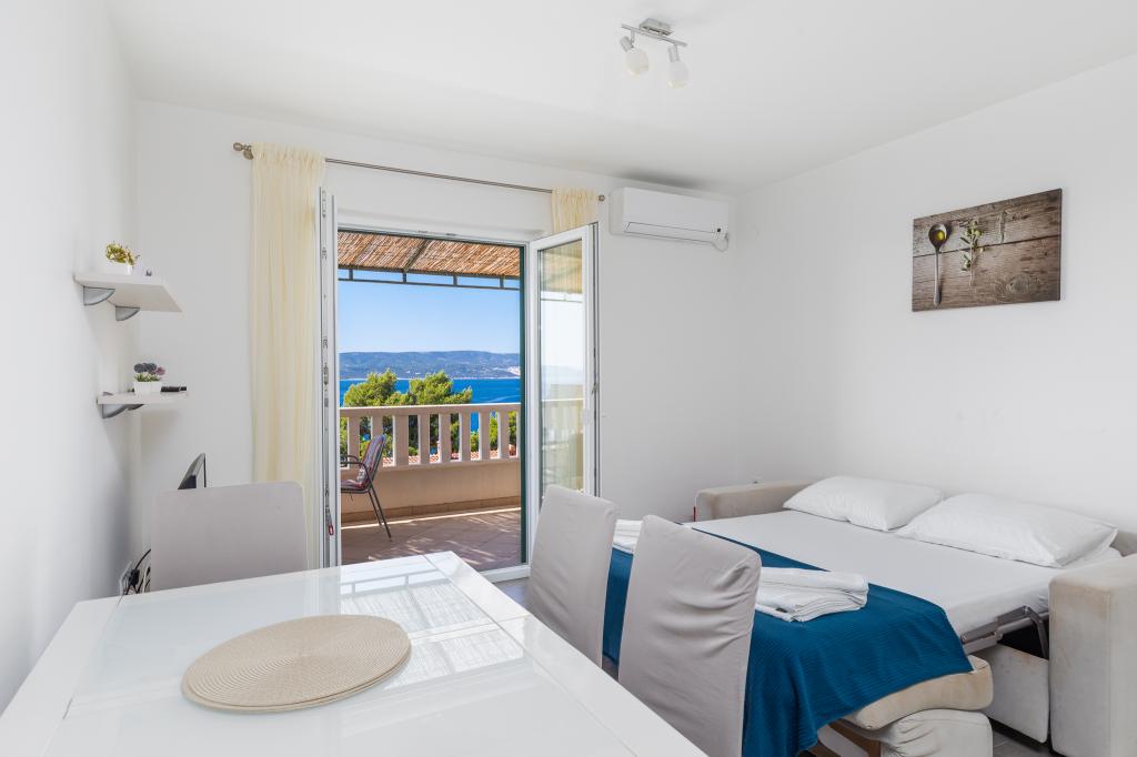 Willkommen in den Apartments Bosiljka in Medića – einer kleinen dalmatinischen Oase der Ruhe zwischen Omiš und Makarska. Nur 50 Meter von den Kiesstränden und dem kristallklaren Meer entfernt heißen Sie Gastgeber willkommen, die ihre Gäste wie Familienmitglieder empfangen. Privater Zugang zum Meer und kostenlose Parkplätze am Haus machen Ihren Urlaub von Anfang an sorglos. Auf den Terrassen und Balkonen liegt der Duft von Meer und Kiefern in der Luft, und der Blick verliert sich im Blau. Alles, was Sie brauchen, ist ein gutes Buch… und ein Lächeln. Die Lage ist der perfekte Ausgangspunkt für Ausflüge: Omiš (15–20 Min.), Split und Trogir für Kultur und Altstädte, Makarska für die lebhafte Promenade, der Fluss Cetina für Rafting und der Biokovo Skywalk für unvergessliche Aussichten. In der Nähe finden Sie einen Laden, eine Post, einen Obststand, Restaurants und Cafés – alles „in Sandalenreichweite“.