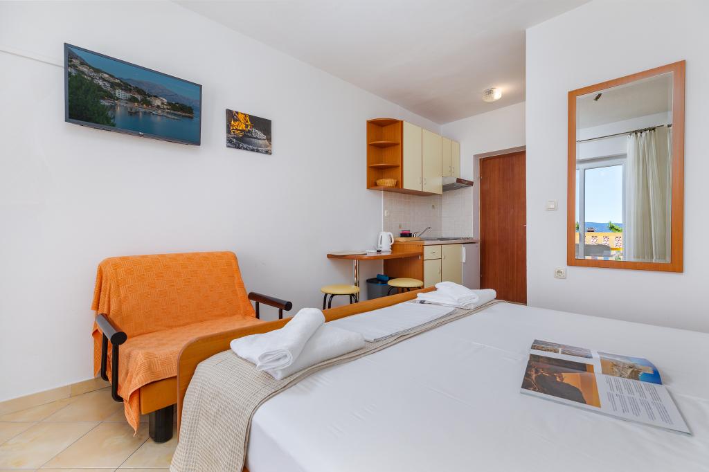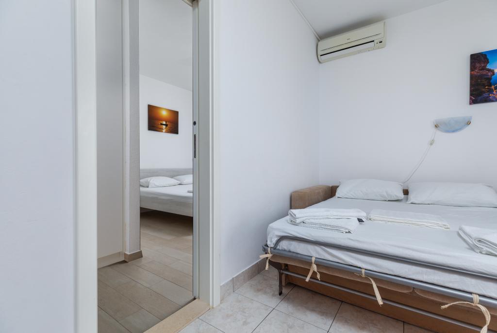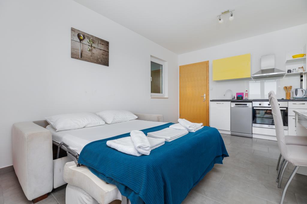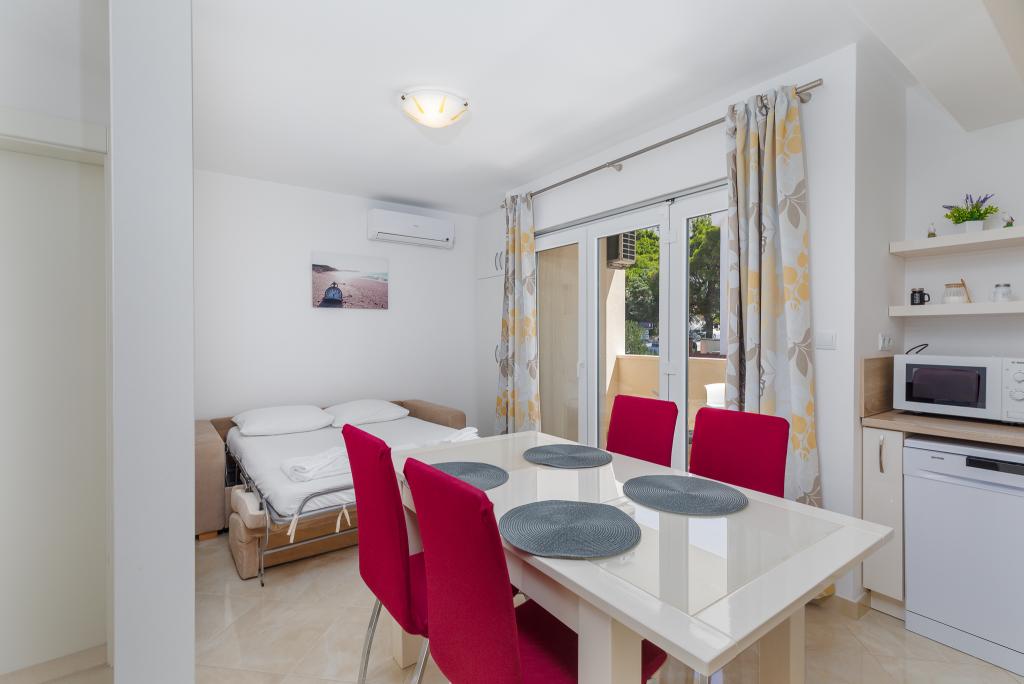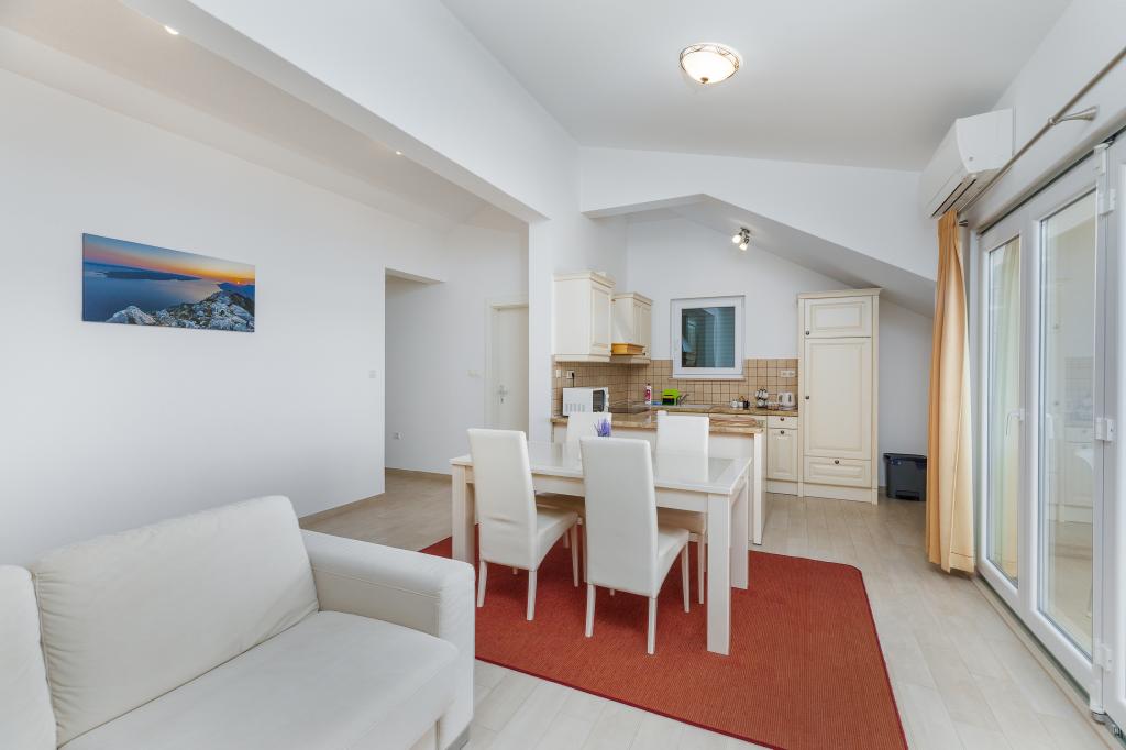 Willkommen in den Apartments Bosiljka in Medića – einer kleinen dalmatinischen Oase der Ruhe zwischen Omiš und Makarska. Nur 50 Meter von den Kiesstränden und dem kristallklaren Meer entfernt heißen Sie Gastgeber willkommen, die ihre Gäste wie Familienmitglieder empfangen. Privater Zugang zum Meer und kostenlose Parkplätze am Haus machen Ihren Urlaub von Anfang an sorglos. Auf den Terrassen und Balkonen liegt der Duft von Meer und Kiefern in der Luft, und der Blick verliert sich im Blau. Alles, was Sie brauchen, ist ein gutes Buch… und ein Lächeln. Die Lage ist der perfekte Ausgangspunkt für Ausflüge: Omiš (15–20 Min.), Split und Trogir für Kultur und Altstädte, Makarska für die lebhafte Promenade, der Fluss Cetina für Rafting und der Biokovo Skywalk für unvergessliche Aussichten. In der Nähe finden Sie einen Laden, eine Post, einen Obststand, Restaurants und Cafés – alles „in Sandalenreichweite“.