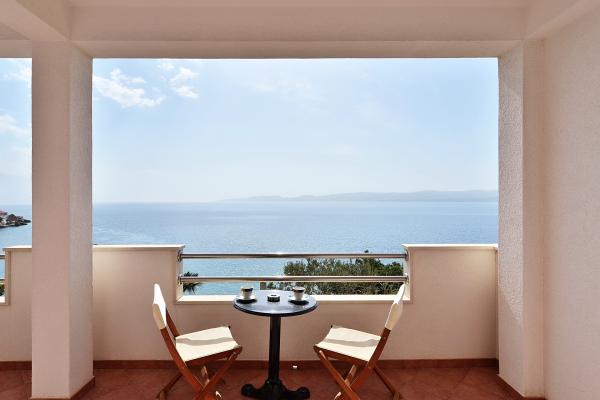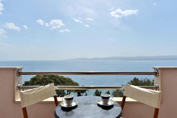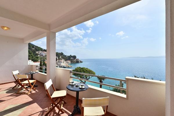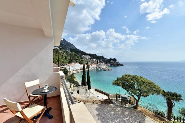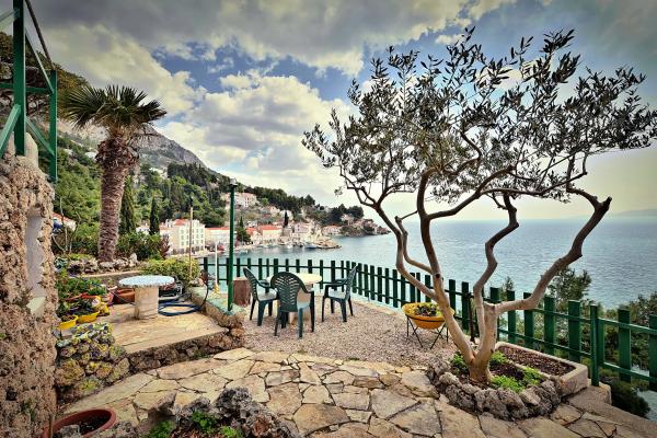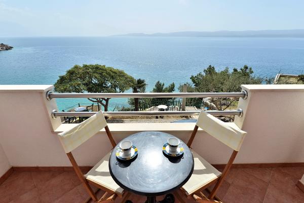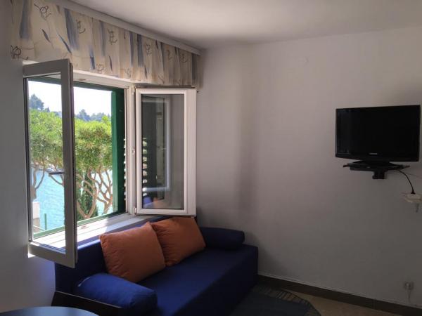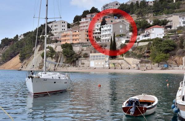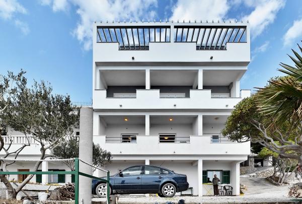 Komplett in einer ausgezeichneten Lage, nur 20 Meter vom Strand entfernt ausgestattete und moderne Apartments. Apartments mit einem herrlichen Blick auf den Hafen Mimica. Die Parkplätze.