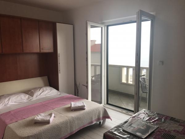 Wohnung in der Nähe zum Meer ca. 50 m die Treppe hinauf, direkt ohne den Umweg über die Straße vorbei, Kieselstrand, sauber, ordentlich, ziemlich große -privater. Die Wohnung besteht aus einem Schlafzimmer mit einem Doppelbett und ein kleiner Teil kuchenno Esszimmer, wo es für 2 Personen ein Schlafsofa ist. Darüber hinaus gibt es eine Terrasse mit seitlichem Meerblick. Die Küche ist mit grundlegenden wesentliche Kochutensilien, schönes großes Bad. Sehr nette Gastgeber, würde für diejenigen, empfehlen die Ruhe, ideal für diejenigen mit Kindern.