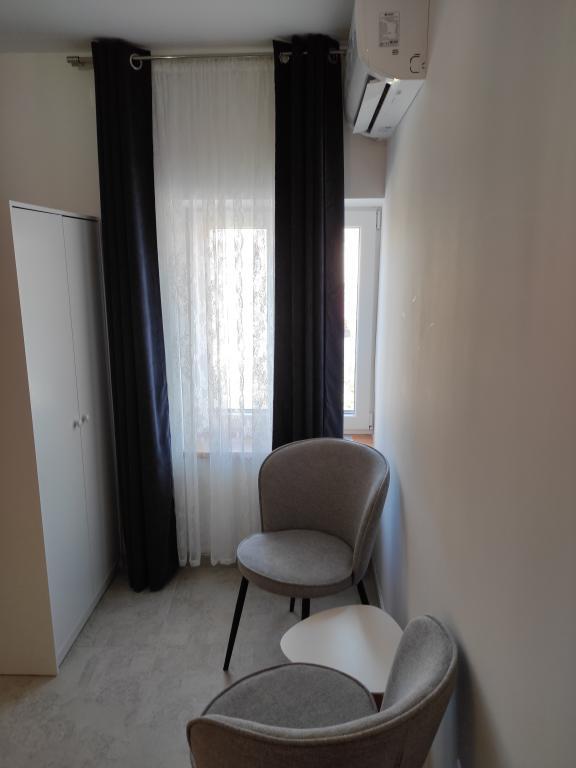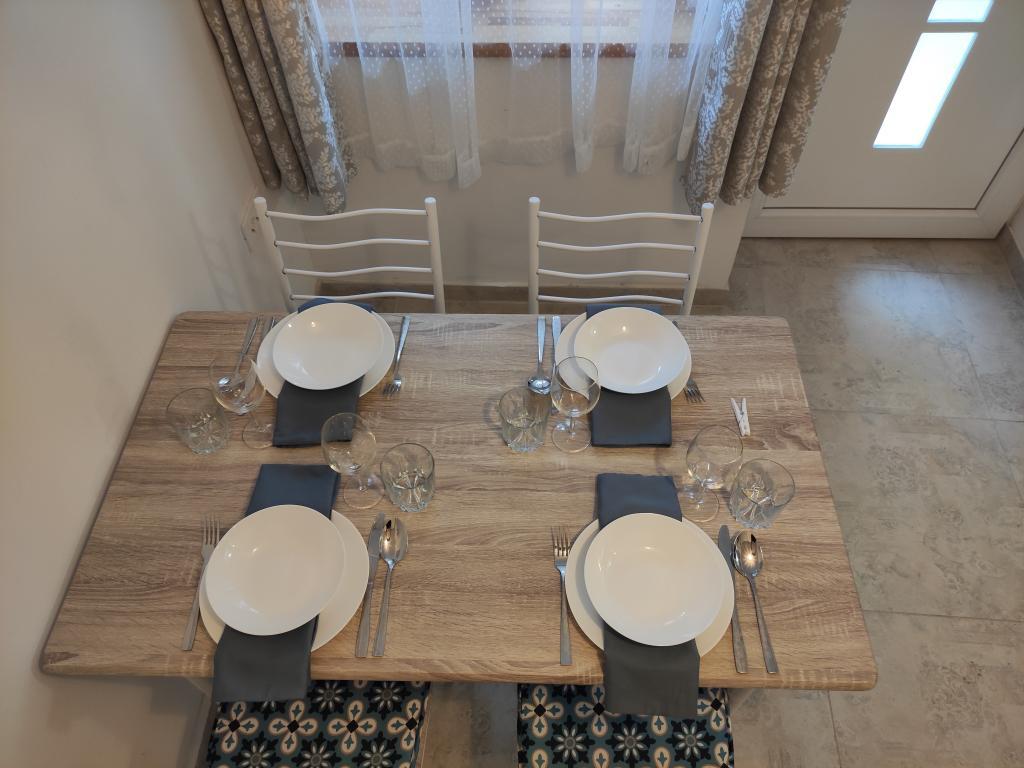 Die Wohnung verfügt über zwei Schlafzimmer, ein Badezimmer, eine Küche und einen großen Balkon. Die Kapazität beträgt 4 Personen. Die Zimmer sind klimatisiert, verfügen über Internet und Android-TV sowie eine Ecke mit Sesseln zum Ausruhen. Eines befindet sich im Erdgeschoss, das andere im ersten Stock der Wohnung. Die Küche ist modern ausgestattet und verfügt über einen Kühlschrank, einen Gefrierschrank, einen Backofen, einen Herd, eine Espressomaschine, komplette Kochutensilien und einen Geschirrspüler. Das Badezimmer ist mit den notwendigen Geräten ausgestattet, darunter eine Waschmaschine. Der Balkon ist überdacht und mit Gartenmöbeln ausgestattet. Im Hof steht Ihnen ein Grill zur Verfügung. Wir warten auf dich
