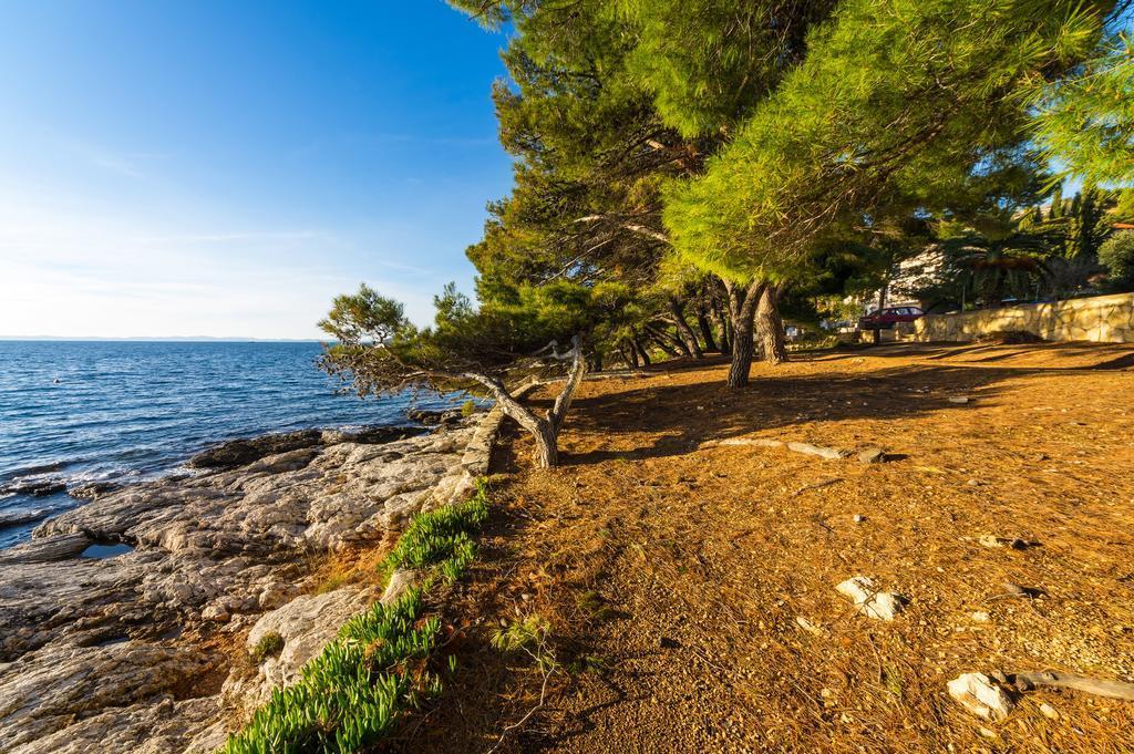 Die Golden Shell Apartments liegen direkt am Meer in der Pod Raduč-Straße. Dieser Ort ist der schönste und beliebteste auf der gesamten Insel Murter. Der Felsstrand befindet sich direkt vor dem Haus und in der Nähe befinden sich die Sandstrände von Slanica und Čigrađa. Die Gegend ist ruhig und verkehrsarm. Vor dem Haus können die Gäste im Schatten der Pinien schwimmen, sonnenbaden und entspannen. Das Zentrum von Murter ist etwa 2 km entfernt, kann aber leicht durch einen angenehmen Spaziergang durch die Grünanlage rund um den Strand von Slanica erreicht werden. Vor dem Haus befindet sich ein großer Parkplatz.