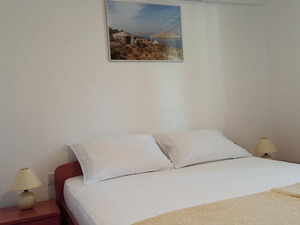 Murter, klimatisierte Apartments für 2-4 Personen direkt am Meer, jeder mit seiner eigenen Terrasse oder einen Balkon in einem großen Innenhof mit einem mediterranen Garten in einer ruhigen Gegend. Der Parkplatz.