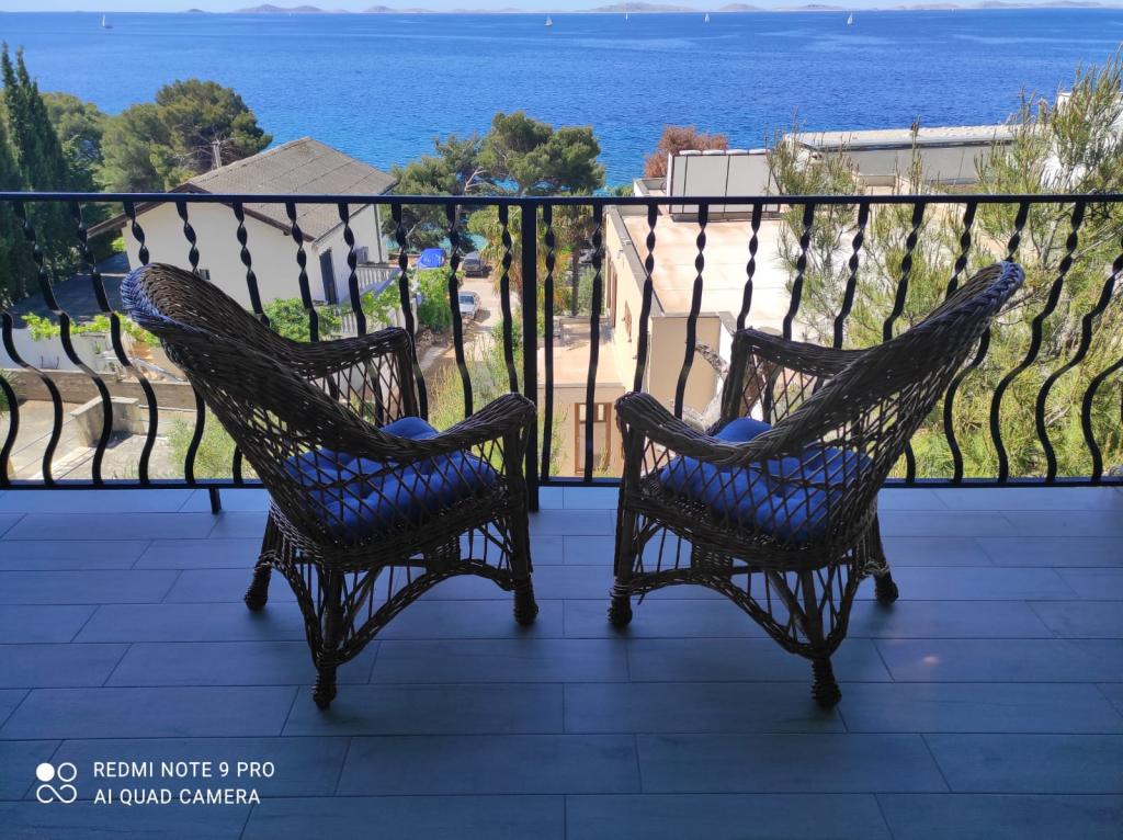 Komplett und modern eingerichtete Apartments in einer ruhigen Gegend der Insel Murter, 2 Reihen zum Meer. Die Unterkunft befindet sich 5 Gehminuten vom Hauptstrand von Slanica und 20 Gehminuten vom Zentrum entfernt. Unterhalb des Hauses befindet sich ein Felsstrand, aber auch eine Bucht mit kleinen Kieselsteinen für Kinder. Von der Terrasse der Unterkunft aus können Sie den Nationalpark Kornati sehen.