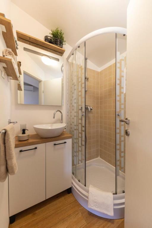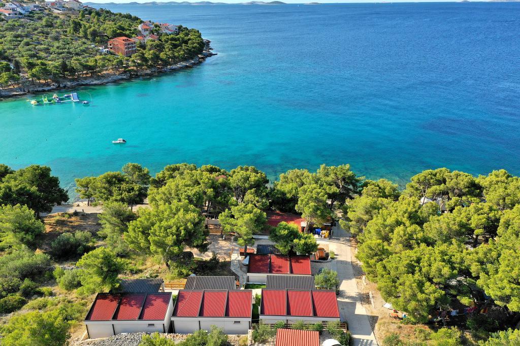 Die Mobilheime im Campingplatz Lostura befinden sich in unmittelbarer Nähe zu einem der schönsten Strände der Adria, Slanica! Das Mobilheim liegt nur 30 m vom Meer und 200 m vom Sandstrand von Slanica entfernt. Es verfügt über eine 40 m² große Terrasse mit 20 m² Balkon. Das Haus bietet zwei Schlafzimmer: eines mit einem Doppelbett (160 x 200 cm) und eines mit zwei Einzelbetten (80 x 200 cm). Im Wohnzimmer befindet sich eine Eckcouch, die als Zustellbett für einen Erwachsenen oder zwei kleine Kinder genutzt werden kann. Die Küche ist komplett ausgestattet mit allen notwendigen Geräten (Kühlschrank mit Gefrierfach, Backofen, Mikrowelle, Geschirrspüler, Wasserkocher, Kaffeemaschine). Das Badezimmer verfügt über Dusche, Waschmaschine, Föhn und Badezimmeraccessoires. Im Wohnzimmer finden Sie einen Fernseher mit Satellitenempfang, kostenloses Internet und eine Klimaanlage mit Heiz- und Kühlfunktion. Auf der Terrasse stehen ein Esstisch mit Stühlen und ein Liegestuhl zum Sonnenbaden und Genießen des herrlichen Ausblicks auf die Kornati-Inseln und den Strand von Slanica. Parkplätze befinden sich in unmittelbarer Nähe des Hauses.