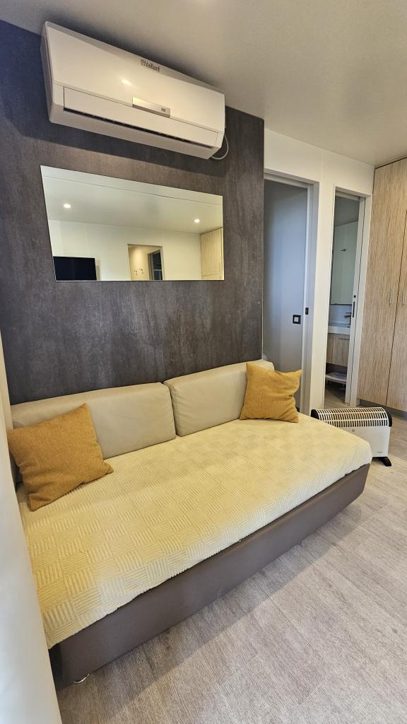 Das Mobilheim Tara befindet sich im Camp Rehut, in der Bucht von Slanica auf der Insel Murter. Slanica ist die schönste Bucht auf Murter, bekannt für ihre türkisfarbene Farbe und das kristallklare Meer. Es ist von einem Pinienwald umgeben, was es ideal für einen Familienurlaub macht. Die seitlichen Teile des Strandes sind felsig, sodass Sie dem Trubel entfliehen und den Strand im Schatten einer Pinie mit Blick auf den Nationalpark Kornati genießen können. Der Kiesstrand liegt 70 m vom Haus Tara entfernt. Das Mobilheim Tara (35,40 m2) ist ein luxuriös eingerichtetes Mobilheim mit einer überdachten Terrasse (15 m2) mit Tisch, Stühlen und Liege. Das Haus verfügt über einen eingebauten Konverter und bietet aufgrund seiner hervorragenden Wärmedämmung sowohl im Sommer als auch im Winter einen angenehmen Aufenthalt. Das Ferienhaus verfügt über kostenfreies WLAN, der Raum ist klimatisiert, mit Bettwäsche und Handtüchern ausgestattet und verfügt über einen kostenlosen Parkplatz vor dem Ferienhaus.