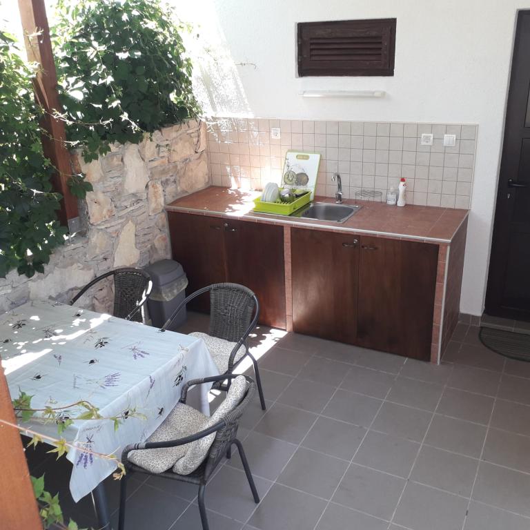 Das grüne Apartment bietet Platz für 4 bis 5 Personen und verfügt über zwei Schlafzimmer, ein Wohnzimmer, eine Küche, ein Badezimmer, eine Terrasse und einen Balkon. Auf der Terrasse und dem Balkon können Sie im Schatten speisen. Das blaue Apartment ist für 4 Personen und bietet ein Schlafzimmer, ein Wohnzimmer, eine Küche, ein Badezimmer und eine Terrasse. Es ist außerdem mit einem Geschirrspüler ausgestattet. Die Apartments sind modern, kürzlich renoviert und stilvoll eingerichtet. Die meisten Möbel sind neu und wurden speziell für jedes Apartment angefertigt. Der Strand ist 200 m entfernt und über einen kleinen Spaziergang durch einen Pinienwald erreichbar. In der Nähe befindet sich keine stark befahrene Straße. Ein Geschäft ist ca. 50 m entfernt, und ein Restaurant erreichen Sie nach 200 m. Am Strand finden Sie außerdem eine Diskothek, mehrere Cafés und eine Bäckerei. Neben Nečujam empfehlen wir Ihnen auf Šolta auch einen Besuch von Stomorska, Maslinica und zahlreichen versteckten Buchten.