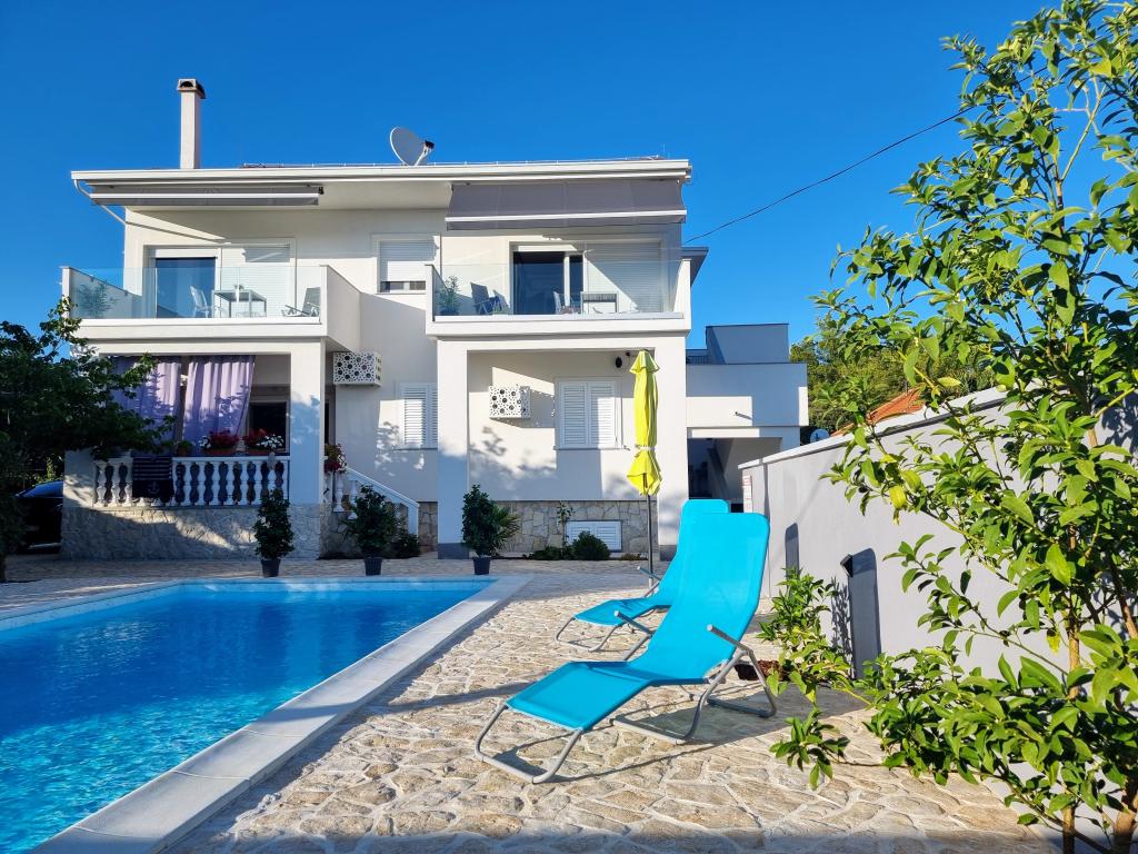 Unser Haus liegt in einer sehr schönen und sehr ruhigen Gegend im malerischen Städtchen Vrsi. Schöne Landschaft, schöne Natur, interessante Kultur und gesundes Klima sind die Eigenschaften, die uns von anderen Orten unterscheiden. Der Hauptstrand ist ganz in der Nähe unseres Hauses und kann durch einen kurzen Spaziergang (80 Meter oder 2 Minuten zu Fuß) erreicht werden. Das Haus verfügt über zwei moderne Wohnungen, die 2019 gebaut wurden. Das größere Apartment „Alan 3“ hat 4 Sterne und ist ideal für große Familien bis zu 6 Personen, während das kleinere Apartment „Alan 2“ mit 3 Sternen für Familien mit bis zu zwei Kindern gedacht ist oder zu einem romantischen Rückzugsort für Paare werden kann Liebe. Jedes Apartment verfügt über einen Balkon mit Blick auf die schöne Bucht und einen großen beheizten Pool, der auf der einen Seite von einem wunderschön angelegten Garten mit Blumen und Zitrusfrüchten und auf der anderen Seite von einem kleinen Olivenhain umgeben ist, der an heißen Sommertagen angenehmen Schatten spendet. Die Terrasse mit Sitzgelegenheiten sorgt tagsüber oder an Sommerabenden für entspannende Momente.