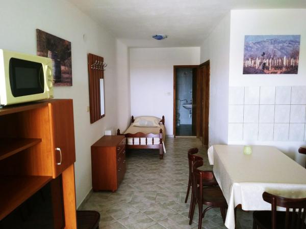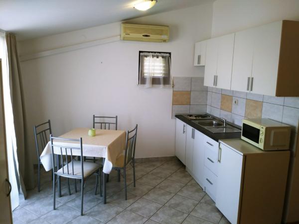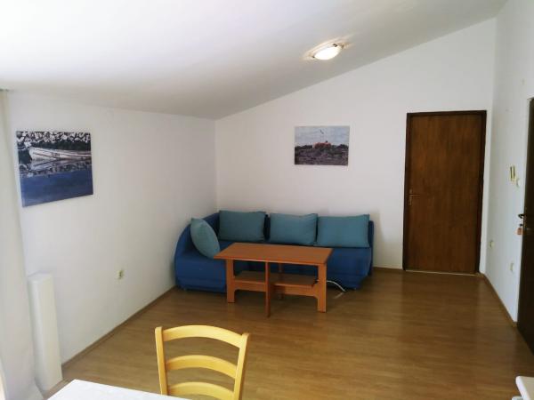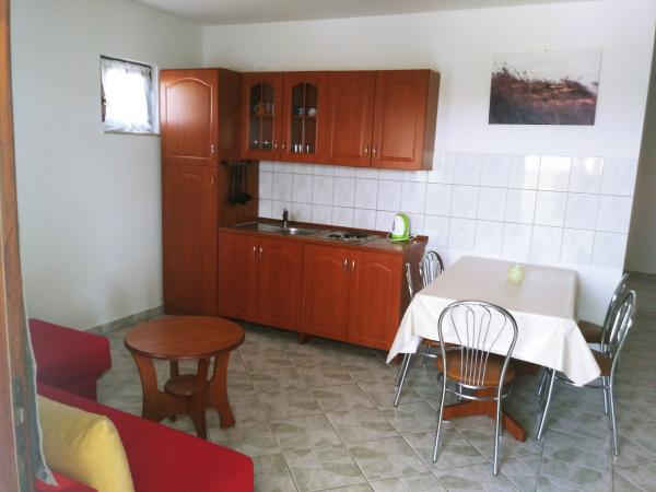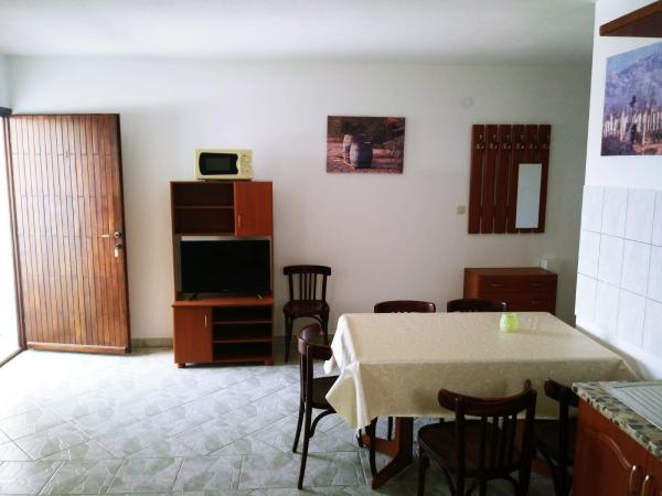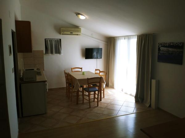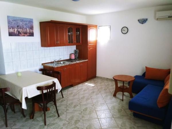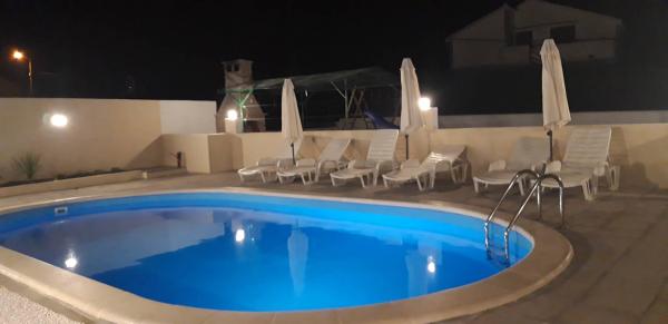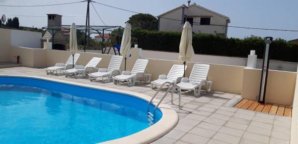 Die Apartments befinden sich in Vrsi-Mulo in der Nähe der Stadt Nin. Vrsi ist von einer 35 km langen Küste umgeben und bietet verschiedene Strände für jeden Geschmack wie Stein, Sand und Kies. Der nächstgelegene Strand ist Kieselstein und eignet sich für kleine Kinder. Der Laden ist 80 m vom Apartment entfernt und das Restaurant ist 100 m entfernt. In Vrsima gibt es viele Bars, Restaurants und Tavernen. Sie haben die Möglichkeit, ein Boot, Jet-Ski, Tretboote und Bootsfahrten zu mieten. Die Apartments verfügen über einen Parkplatz, einen Grill zum Sonnenbaden, einen Kinderspielplatz, ein Trampolin und eine Tischtennisplatte. Der Hof ist eingezäunt und sicher für Kinder. Die Abmessungen des Pools betragen 8 x 4, 2 m und 1,5 m. Die Apartments sind mit Klimaanlage, WI-FI, Mikrowelle, Wasserkocher, Satellitenfernsehen und Terrasse ausgestattet. Und wenn Sie es brauchen, stehen wir Ihnen zur Verfügung.