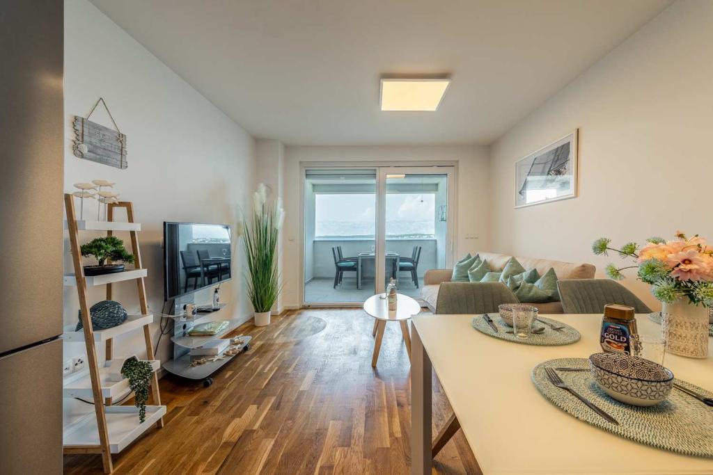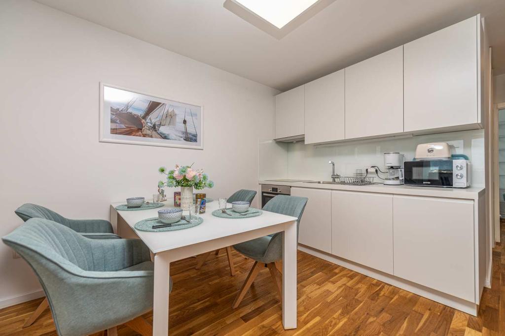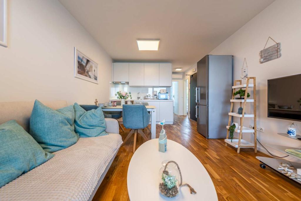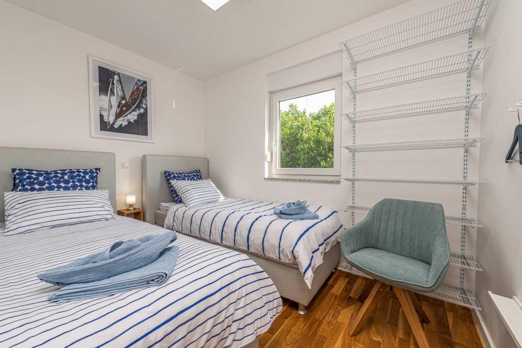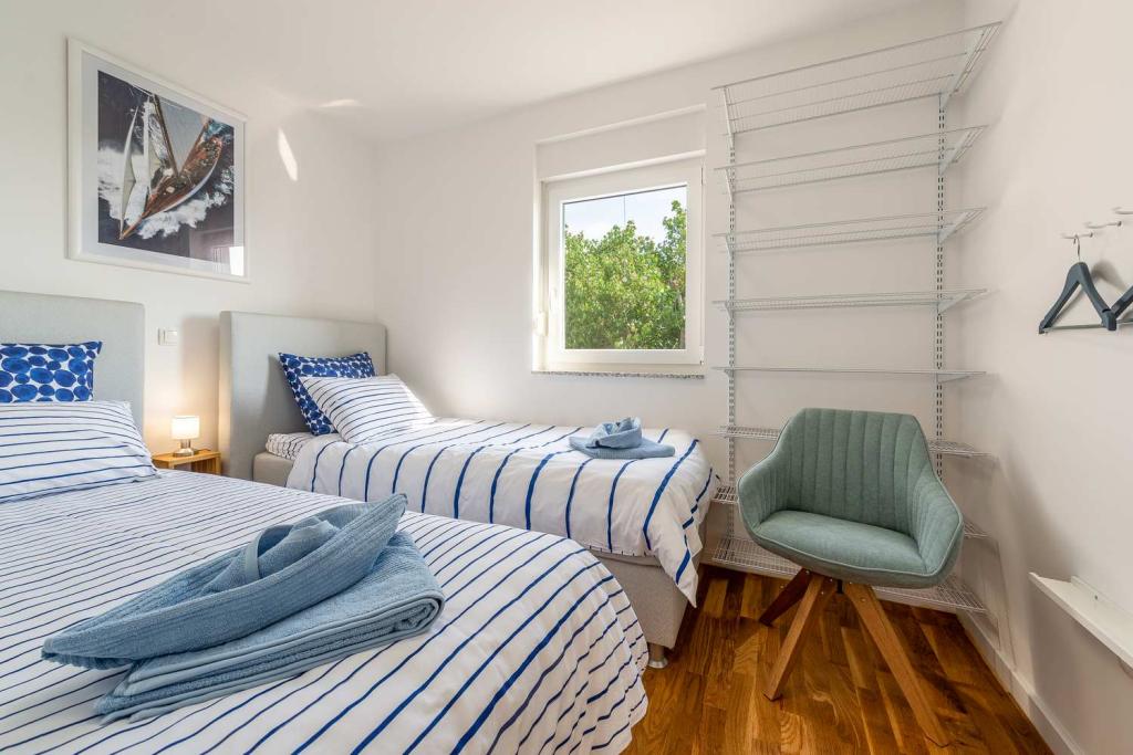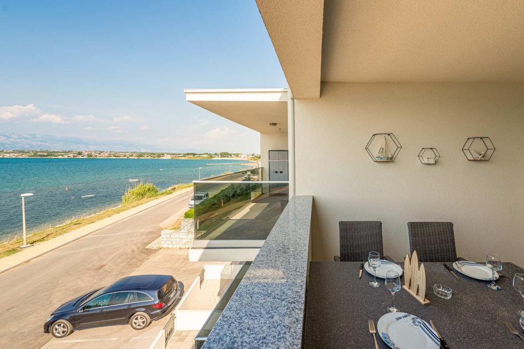 Erste Reihe zum Meer! Nur 10 Meter vom Fußgängerstrand entfernt. 5 Minuten von der Altstadt von Nin. Modernes, geschmackvoll eingerichtetes Apartment mit sehr gut ausgestatteter Küche (Geschirrspüler, Toaster, Wasserkocher, Kaffeemaschine, Mikrowelle, Kühl- und Gefrierschrank, Backofen, 4-Kochfeld). 1 Schlafzimmer mit Doppelbett + 1 Schlafzimmer mit 2 Betten. Dusche und Waschmaschine. Fantastischer Meerblick von Ihrer Terrasse.