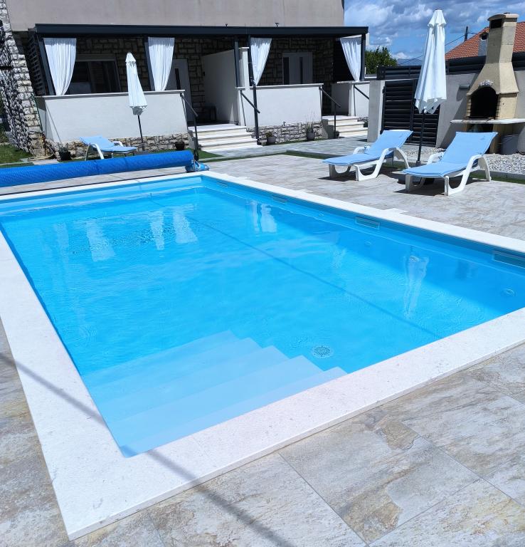 Beheizter Pool (geschlossen vom 15.10.2025 bis 1.5.2026) Willkommen in den Royal Place Apartments, Apartments in der charmanten Königsstadt Nin, nur 16 km von der historischen Stadt Zadar entfernt. Wir bieten zwei luxuriöse Apartments. Ein Schlafzimmer (BALD 2026 Familienzimmer) und zwei Schlafzimmer im Erdgeschoss in ruhiger Lage, nur 200 Meter von der malerischen Strandpromenade, lokalen Restaurants und dem Stadtzentrum entfernt. Der Strand ist 900 Meter entfernt. Die große Etage des Gebäudes umfasst einen ruhigen, eingezäunten Innenhof mit üppigen mediterranen Pflanzen. Darüber hinaus gibt es einen beheizten Salzwasserpool, eine Sonnenterrasse mit Liegestühlen und Sonnenschirmen, eine Außendusche und einen Grill. Das Obergeschoss des Gebäudes hat keinen Zugang.