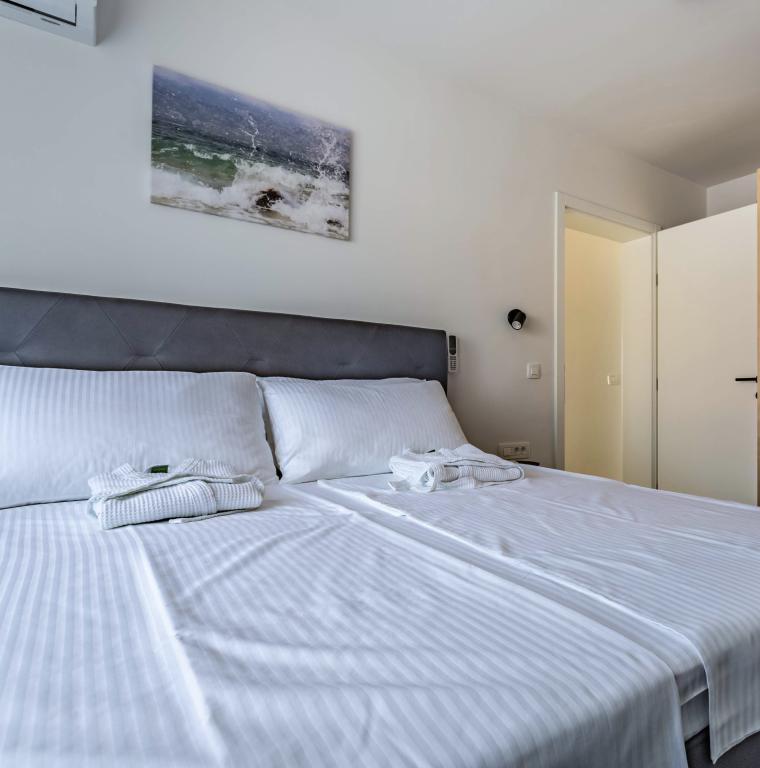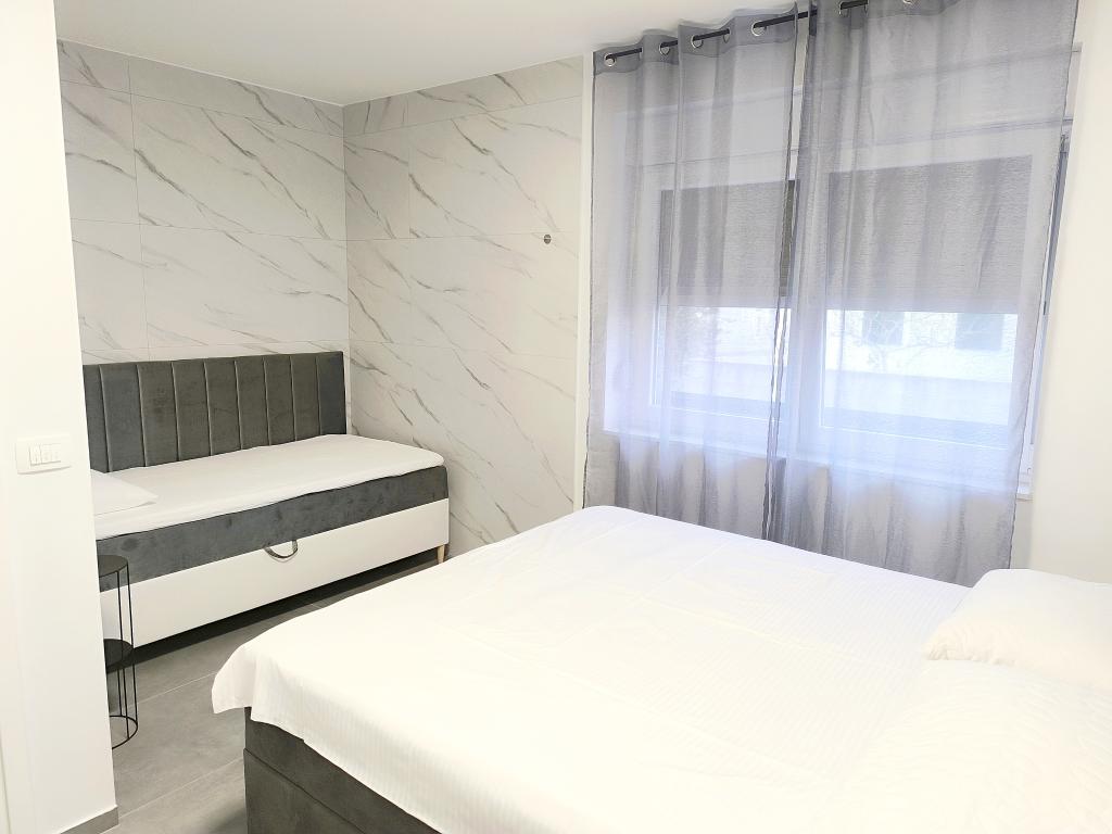 Beheizter Pool (geschlossen vom 15.10.2025 bis 1.5.2026) Willkommen in den Royal Place Apartments, Apartments im charmanten Königsstädtchen Nin, nur 16 km von der historischen Stadt Zadar entfernt. Wir bieten zwei luxuriöse Apartments im Erdgeschoss: ein Apartment mit einem Schlafzimmer (Familienzimmer mit Doppelbett und Einzelbett) und ein Apartment mit zwei Schlafzimmern in ruhiger Lage, nur 200 Meter von der malerischen Strandpromenade, Restaurants und dem Stadtzentrum entfernt. Der Strand ist 700 Meter entfernt. Das große Erdgeschoss verfügt über einen ruhigen, umzäunten Innenhof mit üppiger mediterraner Vegetation. Außerdem gibt es einen beheizten Salzwasserpool, eine Liegewiese mit Liegestühlen und Sonnenschirmen, eine Außendusche und einen Grill. Das Obergeschoss ist nicht zugänglich.