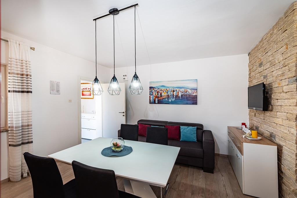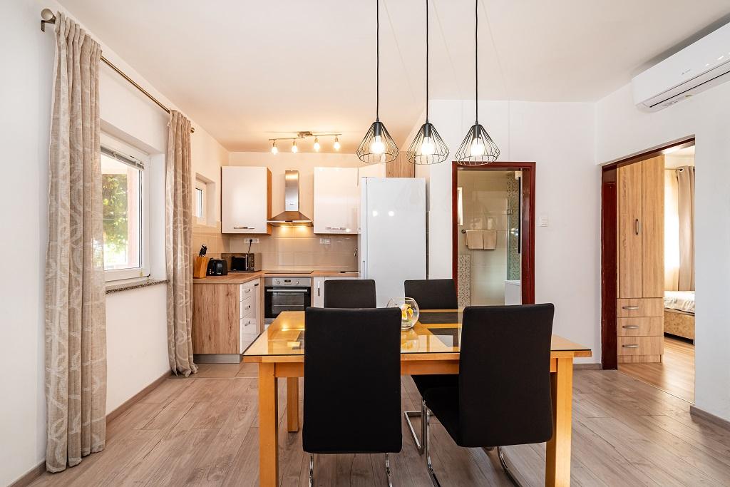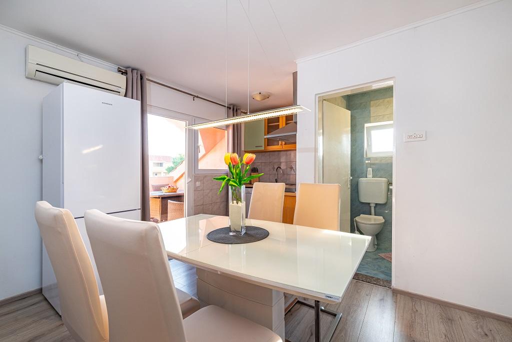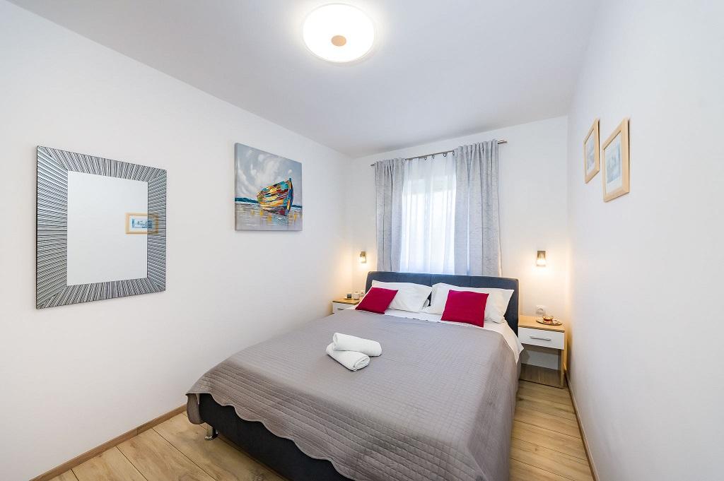 Unsere modernen Apartments befinden sich in Nin, einem Küstenort im südlichen Teil der Bucht von Nin auf der Halbinsel Ždrijac, 17 km nördlich von Zadar. Nin ist die älteste Königsstadt Kroatiens und liegt in der Nähe des berühmten Sandstrandes Ždrijac. Die Stadt ist nicht nur historisch bedeutsam, sondern bietet zusammen mit ihrer Umgebung auch ideale Bedingungen für Erholung und Freizeit. In der Umgebung von Nin befinden sich mehrere lange Sandlagunen mit ruhigen Sandstränden abseits des Trubels sowie ein Industriegebiet mit hervorragendem Mikroklima. Die Apartments liegen in einer schönen und sehr ruhigen Gegend, nur fünf Gehminuten vom Strand und der Adria entfernt. Das Haus erstreckt sich über zwei Etagen. Die Eigentümer wohnen im Erdgeschoss, zwei Apartments befinden sich im ersten und zwei im zweiten Stock. Das Haus ist freistehend und das Grundstück ist umzäunt, sodass es sich ideal für Familien mit Kindern eignet. Es gibt Parkplätze für fünf Autos und einen Grillplatz im Garten. Die Apartments sind nicht barrierefrei. WLAN ist verfügbar. Der Strand und das Meer sind nur 100 m von den Apartments entfernt, weitere Einrichtungen befinden sich in 600 m Entfernung.