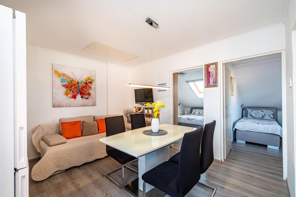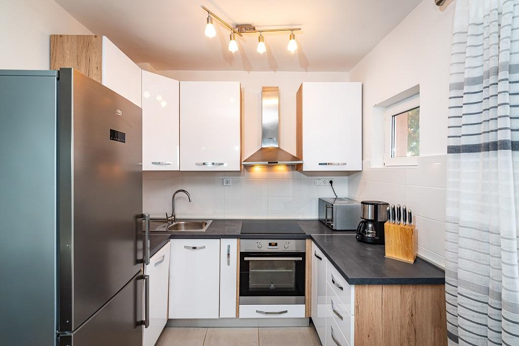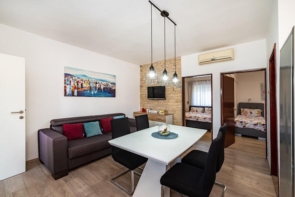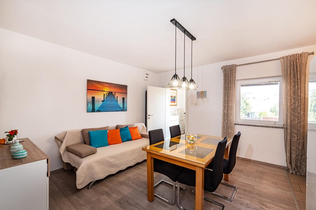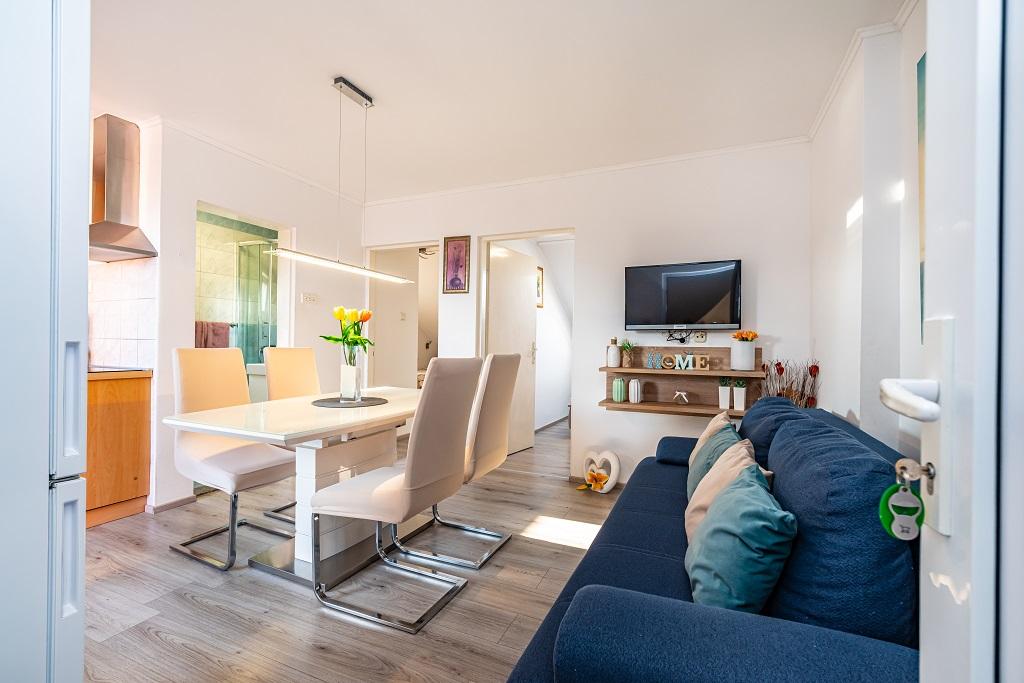 Unsere modernen Apartments befinden sich in Nin, einem Küstenort im südlichen Teil der Bucht von Nin auf der Halbinsel Ždrijac, 17 km nördlich von Zadar. Nin ist die älteste Königsstadt Kroatiens und liegt in der Nähe des berühmten Sandstrandes Ždrijac. Die Stadt ist nicht nur historisch bedeutsam, sondern bietet zusammen mit ihrer Umgebung auch ideale Bedingungen für Erholung und Freizeit. In der Umgebung von Nin befinden sich mehrere lange Sandlagunen mit ruhigen Sandstränden abseits des Trubels sowie ein Industriegebiet mit hervorragendem Mikroklima. Die Apartments liegen in einer schönen und sehr ruhigen Gegend, nur fünf Gehminuten vom Strand und der Adria entfernt. Das Haus erstreckt sich über zwei Etagen. Die Eigentümer wohnen im Erdgeschoss, zwei Apartments befinden sich im ersten und zwei im zweiten Stock. Das Haus ist freistehend und das Grundstück ist umzäunt, sodass es sich ideal für Familien mit Kindern eignet. Es gibt Parkplätze für fünf Autos und einen Grillplatz im Garten. Die Apartments sind nicht barrierefrei. WLAN ist verfügbar. Der Strand und das Meer sind nur 100 m von den Apartments entfernt, weitere Einrichtungen befinden sich in 600 m Entfernung.