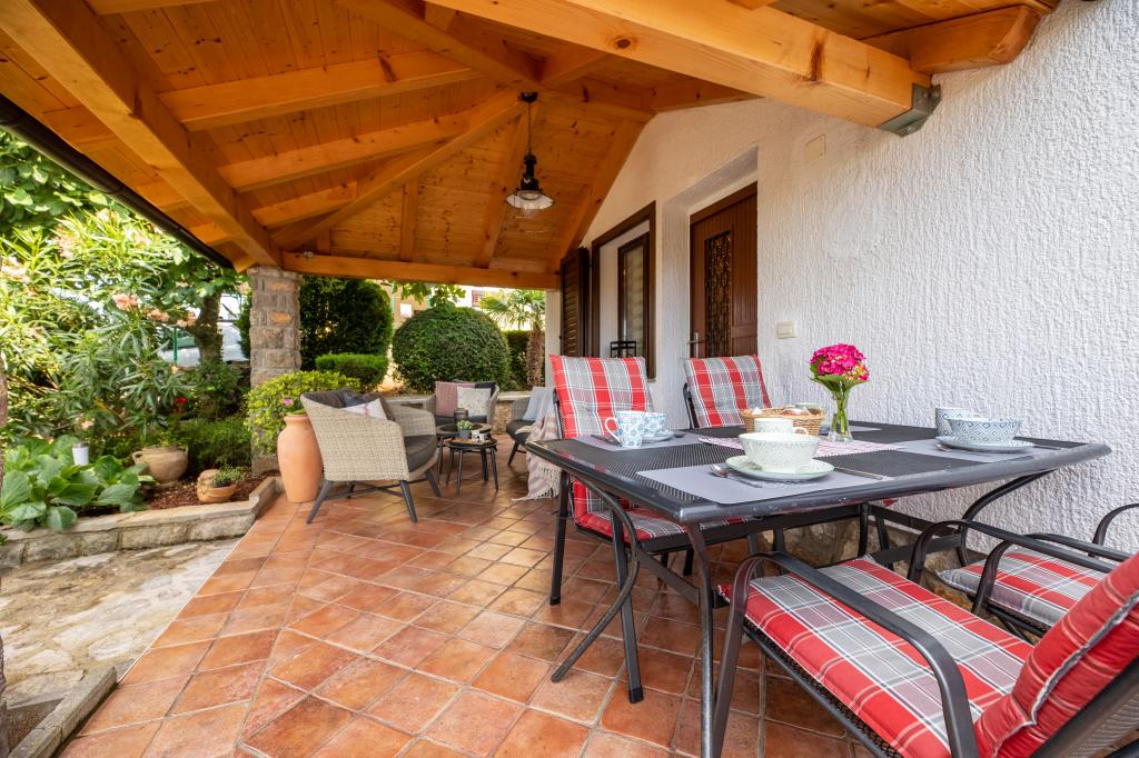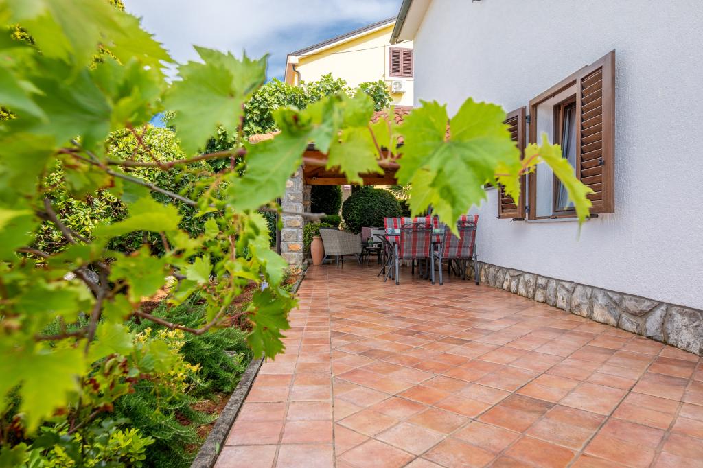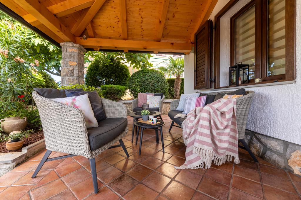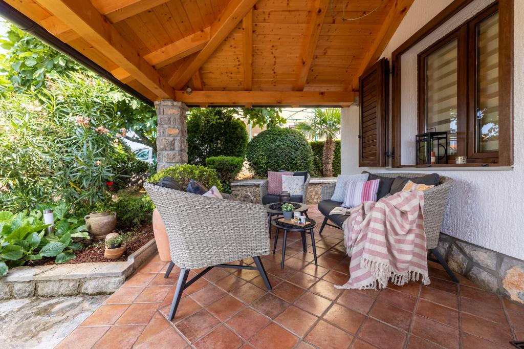 In ruhiger Lage in Njivice auf der Insel Krk gelegen, bietet dieses frisch renovierte Erdgeschoss-Apartment die ideale Kombination aus Komfort und entspannter mediterraner Atmosphäre. Es ist perfekt für Familien oder kleinere Gruppen, die einen ruhigen und ungestörten Urlaub am Meer verbringen möchten. Das Apartment verfügt über zwei geräumige Schlafzimmer, ein modernes Badezimmer und ein separates WC. Eines der Schlafzimmer hat ein kleines Zimmer mit einem Zustellbett. Eine voll ausgestattete Küche und ein gemütliches Wohnzimmer bieten alles für einen erholsamen Aufenthalt. Ein besonderes Highlight ist die überdachte Terrasse inmitten von Grün – ideal für den Morgenkaffee, ein gemeinsames Essen oder entspannte Abende. Zur Ausstattung gehören Klimaanlage, WLAN, ein privater Parkplatz, eine Außendusche und ein Grill. Der Strand ist nur 600 Meter entfernt, und in der Nähe finden Sie Restaurants, Geschäfte und alle Annehmlichkeiten für einen unbeschwerten Urlaub. Genießen Sie das kristallklare Meer, Spaziergänge entlang der Küste und die authentische Inselatmosphäre, die die perfekte Balance zwischen Erholung und Aktivität bietet.