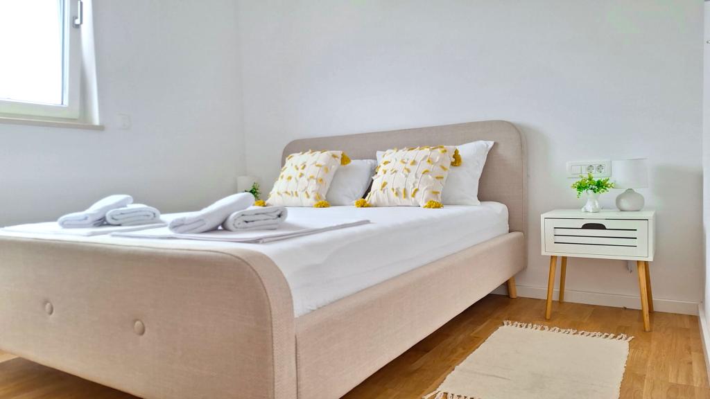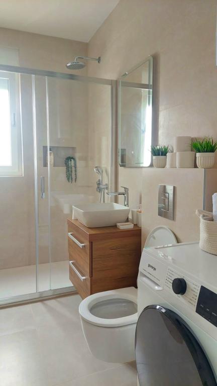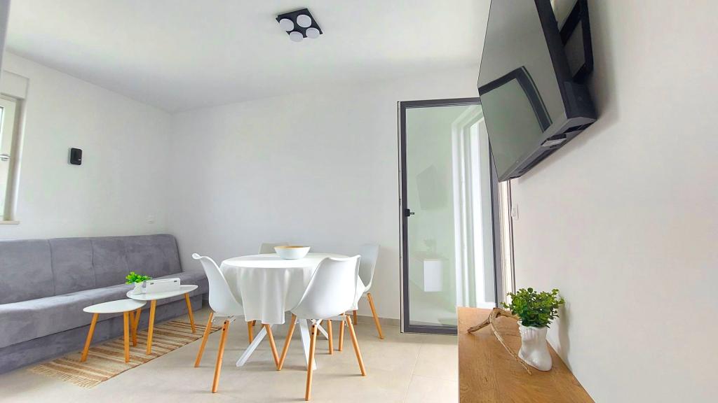 Die Wohnung befindet sich in einem Neubau in Novalja und bietet einen wunderschönen Meerblick. Sie ist komplett mit neuen, modernen Möbeln ausgestattet und garantiert einen komfortablen und unbeschwerten Aufenthalt. Jedes Zimmer verfügt über eine Klimaanlage, und die gesamte Wohnung ist mit Fußbodenheizung ausgestattet. Gästen stehen ein privater Parkplatz und eine voll ausgestattete Küche zur Verfügung. Für zusätzlichen Freizeitspaß sorgen ein Stand-Up-Paddle-Board und ein Elektroroller. Der Strand ist nur 350 Meter entfernt, das Zentrum von Novalja erreichen Sie nach 1,5 Kilometern. Ein Geschäft befindet sich direkt gegenüber und macht Ihren Aufenthalt noch angenehmer.
