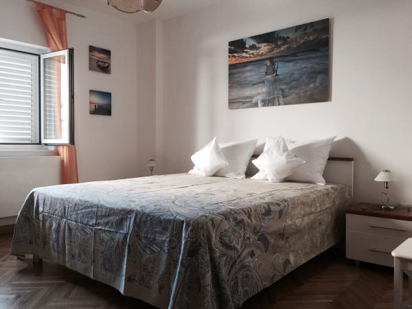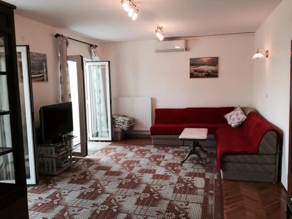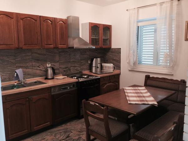 Voll Luxus möblierte Apartments in einem ruhigen Teil von Novi Vinodolski. 300 m vom Strand (5 min zu Fuß) und 10 Minuten zu Fuß zum Zentrum. Kleinere Wohnung befindet sich im Erdgeschoss und groß auf der ersten Etage des Hauses. Das Innere der kleinen verfügt über eine Küche, Wohnzimmer mit Schlafcouch, Bad und Schlafzimmer. Die Wohnung besteht aus einer großen Küche, zwei Bäder, große Terrassen, Balkone, Wohnzimmer und drei geräumige Schlafzimmer mit sechs Betten. Es gibt ein komplettes Garten mit Grill. Waschmaschine auf Anfrage. Große Rabatte in der Vorsaison.