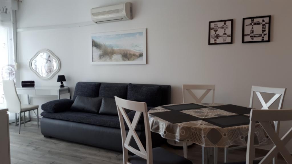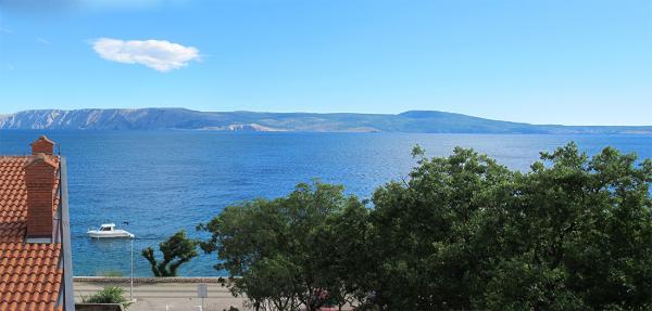 Neu renovierte Wohnung, 50 Meter vom Meer entfernt, in einem ruhigen Teil von Novi Vinodolski. Die Wohnung besteht aus einem Schlafzimmer mit Doppelbett mit TV, Wohnzimmer mit Zustellbett für zwei Personen und TV. Voll ausgestattete Küche mit Essecke: Elektroherd, Herd, Backofen, Mikrowelle, Kühlschrank mit Gefrierfach, Geschirrspüler, Wasserkocher und Toaster. Badezimmer - Dusche, Waschbecken, WC, Bidet, Waschmaschine und Fön. Balkon mit Meerblick. Die Wohnung ist von viel Grün umgeben, hat einen Innenhof mit einem gemeinsamen Grill. In der Nähe von Stein-, Kies- und Betonstränden, nur ein paar Minuten zu Fuß. Es gibt einen Parkplatz vor dem Gebäude.