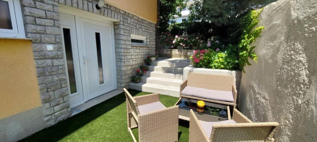 Das Apartment VAL (2+2) befindet sich im Dachgeschoss eines Einfamilienhauses und bietet einen Panoramablick auf das Meer und die Insel Krk. Der Strand ist 300 m entfernt. Parkplätze stehen vor dem Haus im Hof zur Verfügung. Haustiere sind willkommen und übernachten kostenlos. Das Apartment BEPA (2+1) befindet sich im Erdgeschoss eines Einfamilienhauses und bietet einen teilweisen Meerblick sowie Blick auf die Insel Krk. Haustiere sind willkommen und übernachten kostenlos. Das Apartment ELENA (2+2) befindet sich ebenfalls im Erdgeschoss eines Einfamilienhauses und bietet einen teilweisen Meerblick. Der Strand ist 200 m entfernt. Parkplätze stehen im Hof zur Verfügung. Das Apartment AVA (2+2) befindet sich im 1. Stock eines Wohnhauses und bietet Blick auf die Altstadt. Der Strand ist 200 m entfernt. Haustiere sind willkommen und übernachten kostenlos. Die Parkplätze sind öffentlich und im Übernachtungspreis inbegriffen.