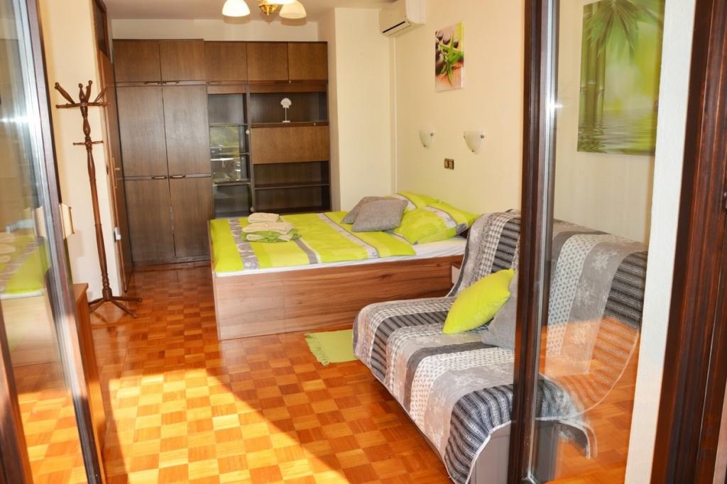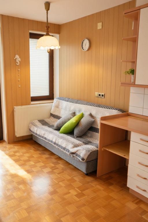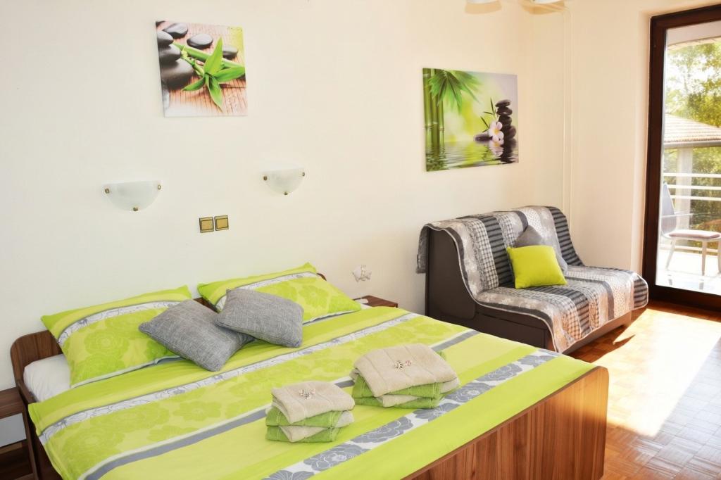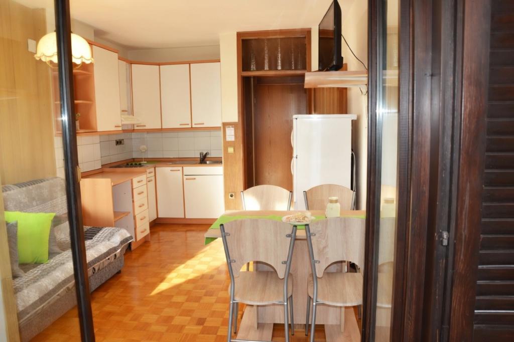 Das klimatisierte Apartment im 1. Stock bietet Platz für bis zu 4 Personen. Es liegt in ruhiger Lage ohne Verkehrslärm, wo Kinder unbeschwert spielen können und die Zeit stillzustehen scheint. Genießen Sie jeden Abend den Sonnenuntergang von Ihrer eigenen Terrasse aus. Neben der Wohnküche gibt es ein separates Schlafzimmer, ein Badezimmer und eine überdachte Terrasse mit Meerblick. Das Apartment ist komplett ausgestattet – Geschirr und Besteck sind in der Küche ausreichend vorhanden. Fernseher, Bettwäsche, Handtücher und ein Haartrockner stehen Ihnen ebenfalls zur Verfügung. WLAN nutzen Sie kostenfrei. Parkplätze sind vorhanden.