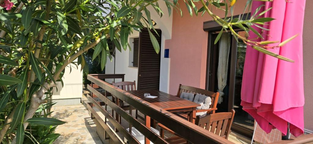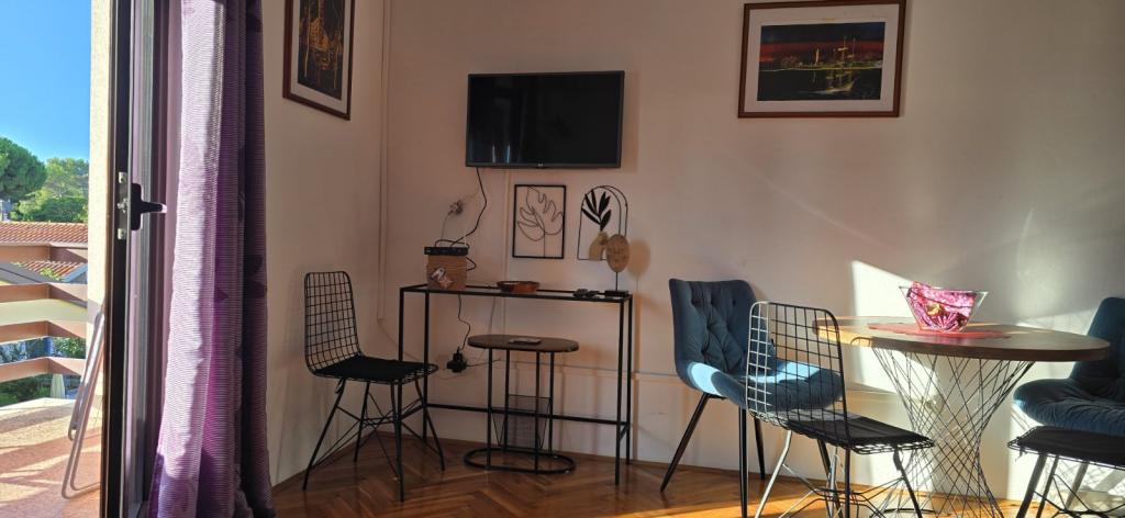 In unmittelbarer Strandnähe gelegen, lehnt sich das Marina-Haus an einen Pinienwald und eine malerische lange Promenade mit Blick auf das endlose Blau des Meeres. Sie führt in der einen Richtung zu ruhigen Stränden und versteckten Buchten und in der anderen durch den Yachthafen bis ins Stadtzentrum. Entlang der Promenade gibt es Restaurants, Cafés, einen Kinderpark, Sportplätze, Tennisplätze, einen Minigolfplatz, ein Fitnessstudio im Freien und einen Öko-Platz mit grüner Flagge. Der Duft von Pinien, Meer und Salz verleihen dem gesamten Ambiente eine angenehme und besondere Atmosphäre. Das Haus Marina ist der perfekte Ort für einen ruhigen Urlaub, auf Wunsch aber auch für einen aktiven Aufenthalt in der Natur. Das Innere des Hauses ist so gestaltet, dass es klassischen und modernen Stil vereint. Es geht darum, den Komfort im Schlafzimmer und anderen Räumen zu maximieren. Die Wohnungen sind komfortabel und mit modernen Geräten ausgestattet. Jede Wohnung verfügt über eine großzügige Terrasse, die zum Entspannen einlädt. Im Hof des Hauses gibt es einen Grillplatz und einen Parkplatz. Zum Strand sind es eine Minute zu Fuß und in die Innenstadt 10 Minuten, entlang der Promenade am Meer.