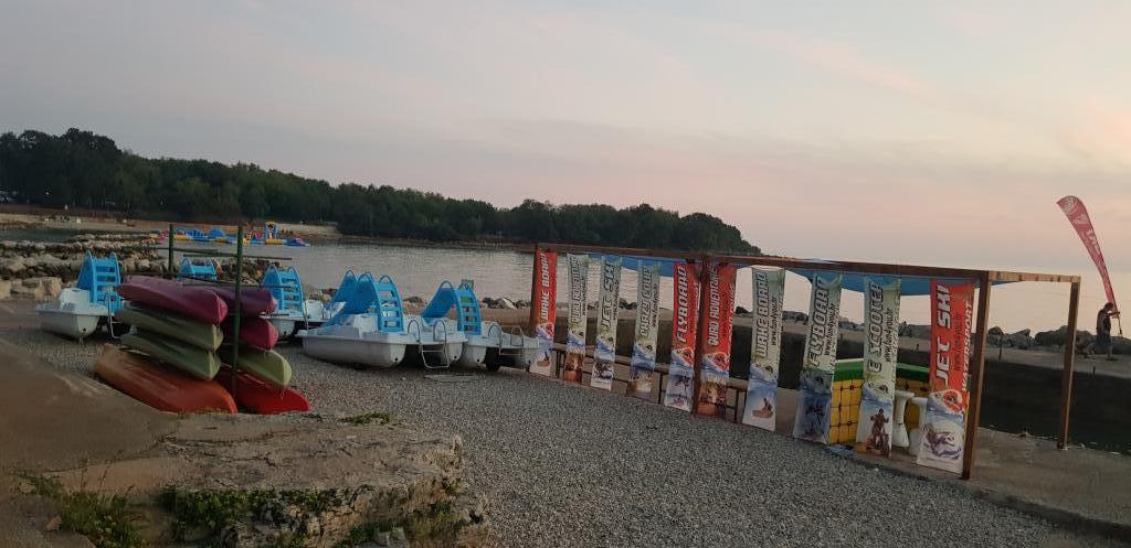 Kinderspielplatz im Park hinter der Wohnung, Sportanlagen sind 200 Meter von der Wohnung entfernt, Shop im Camping Aminess.