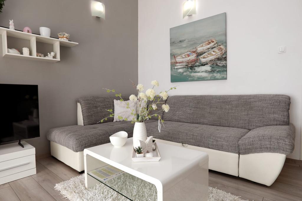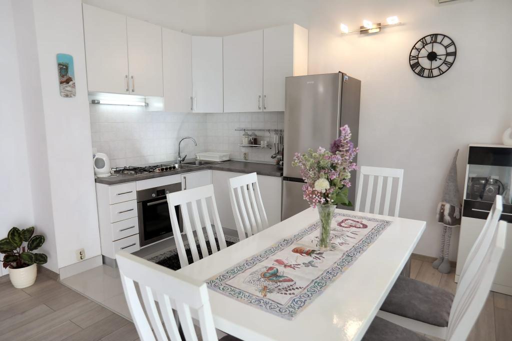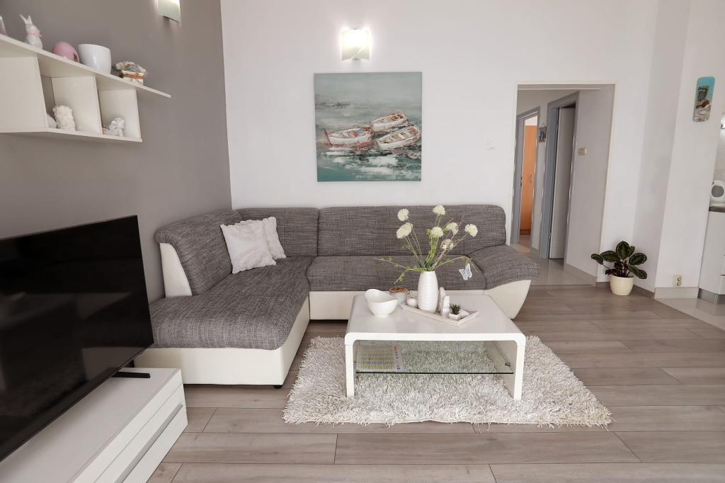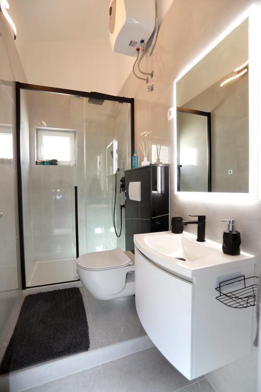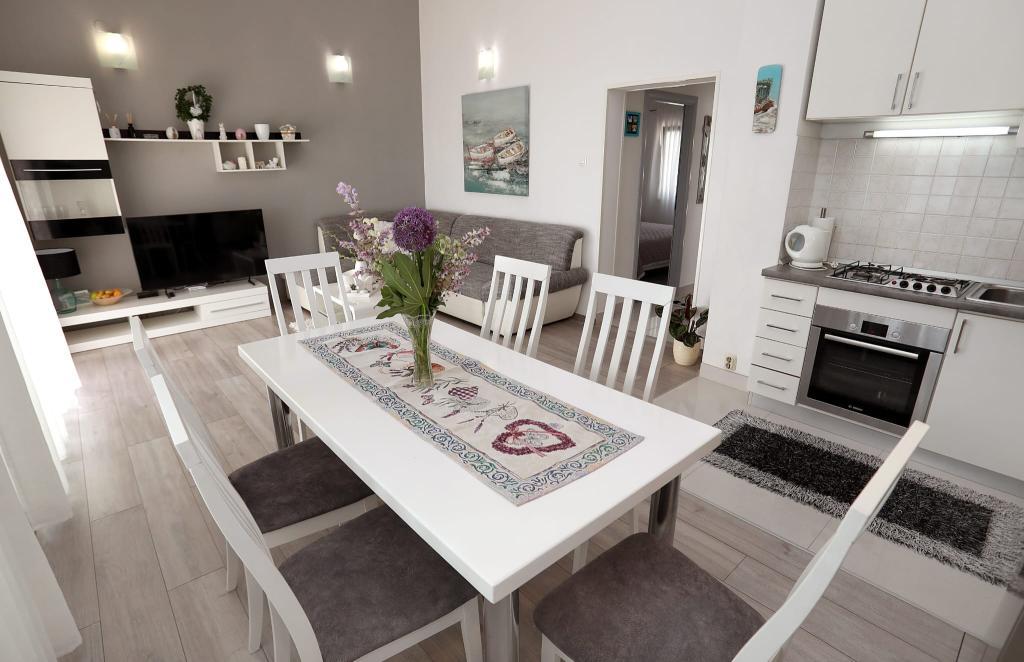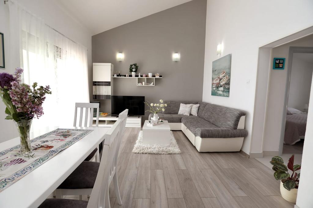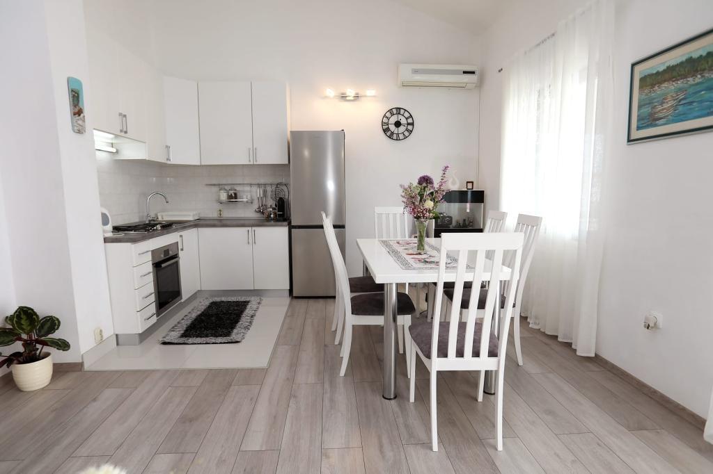 Das Apartment Katija befindet sich in Okrug Gornji, nur 30 m vom Meeresufer entfernt. Unser Apartment bietet eine perfekte Kombination aus Ruhe, Komfort und einem bezaubernden Blick auf zahlreiche dalmatinische Inseln. Es ist ein ideales Reiseziel für Familien, Paare und alle, die Entspannung in einer natürlichen Umgebung suchen, abseits der Massen und dennoch in der Nähe aller notwendigen Annehmlichkeiten. Genießen Sie Ihren Morgenkaffee oder den abendlichen Sonnenuntergang auf Ihrer privaten Terrasse, wo Sie eine atemberaubende Aussicht erwartet. Nur 5 Gehminuten entfernt befindet sich ein gepflegter und kinderfreundlicher Strand mit flachem Wasser und natürlichem Schatten – ideal für einen Familienurlaub. Hauptmerkmale der Wohnung: Nähe zum Meer, Terrasse mit schöner Aussicht, voll ausgestattete Küche mit Essbereich und Wohnzimmer, zwei Schlafzimmer mit Doppelbetten, Badezimmer mit Dusche und grundlegenden Annehmlichkeiten, kostenloses WLAN, Klimaanlage, TV, kostenloser Parkplatz. Egal, ob Sie einen Aktivurlaub planen oder einfach nur Sonne und Meer genießen möchten, unser Apartment im Stadtteil Gornji bietet alles, was Sie für einen unvergesslichen Aufenthalt brauchen.