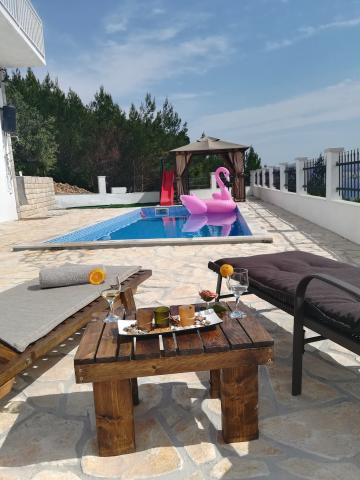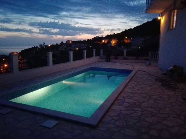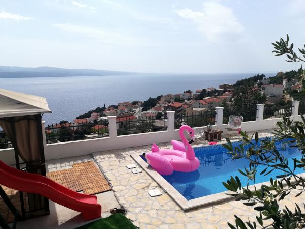 Willkommen in Privatunterkunft im Familienhaus Bernard in Stanići, 4 km von Omis entfernt. Das Haus mit 2 Wohnungen befindet sich an einer Steilküste und bietet einen schönen Blick auf das Meer, die Inseln und den Pool. Der Ort ist ruhig, ideal für einen Familienurlaub. Das Zentrum des Ortes mit zwei Geschäften, Pizzeria und Restaurant ist 400 m entfernt.Das Haus mit zwei Wohnungen mit Schwimmbad für 8 2 Personen in der Oase der Ruhe und Kinderspielplatz wird Ihnen einen unvergesslichen Urlaub geben.