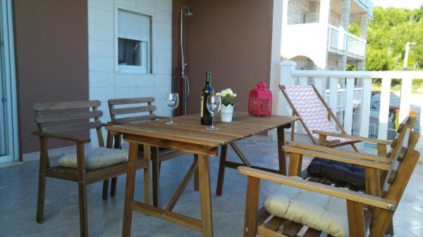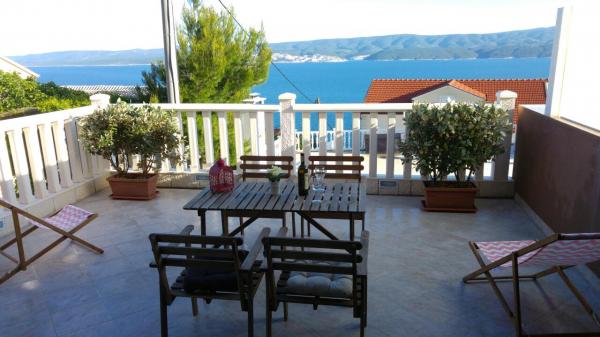 Die Wohnung befindet sich in einem ruhigen Ort. . Die Wohnung ist nicht neu gebaut und schön eingerichtet. Der Wohnbereich besteht aus cc45m2 und eine schöne Terrasse cc35m2 mit Blick auf das Meer und die Inseln. . vom Meer entfernt cc 900m. . auch von cc 5 km Omis