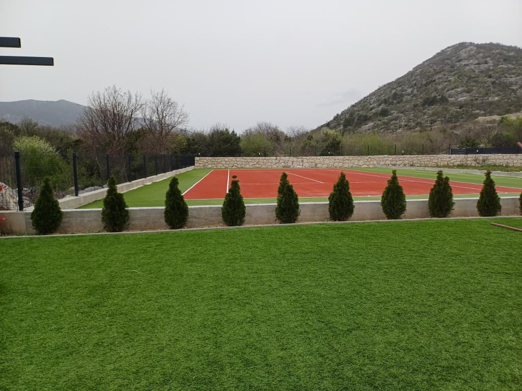 Die Villa Sky liegt unweit von Omiš in wunderschöner Natur. Es ist umgeben von viel Grün, Wiesen und Rasenflächen. Es ist ideal für Familien und Gruppen, da Sie Ihre Privatsphäre haben, das erste Haus ist 4 km entfernt. Sie sind ganz allein im Haus mit Ihren Lieben. Die Villa hat eine Erdgeschossfläche von 240 m2 und der Garten ist etwa 2800 m2 groß. Das gesamte Gelände ist wegen Kindern und Haustieren eingezäunt. Es verfügt über 3 Zimmer für zwei Personen, 1 für drei Personen, 3 Badezimmer und Toiletten. Gemeinschaftstoilette mit Waschmaschine und Trockner. Ein großes Wohnzimmer, in dem ein Bett für 1 Erwachsenen untergebracht werden kann, eine große Küche mit Esszimmer und einem Schlitten. Spielen Sie zur Erholung Tennis oder kleinen Fußball, Badminton... Vor dem Haus befindet sich ein 4 × 10-Pool, ein Whirlpool für 5 Personen, ein großer Tisch im Freien und ein Grill. Für angenehmes Beisammensein an der frischen Luft gibt es eine Loungebar. Für Kinder gibt es einen Spielplatz. Mit Grün bedeckter Parkplatz. Bei Fragen können Sie mich gerne kontaktieren, ich helfe Ihnen gerne weiter. Wenn Sie das Meer bevorzugen, erreichen Sie in 20 Minuten einen Sand- und Kiesstrand in Omiš.