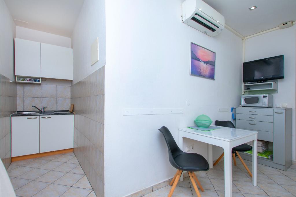 Das Apartment „Piccolo“ liegt 5–10 Gehminuten von der Altstadt von Omiš und ca. 5–7 Gehminuten vom Strand (Velika plaža) entfernt. Es ist 25 m² groß und besteht aus einem Wohnzimmer mit Essbereich und kleiner Küche, einem separaten Schlafzimmer und einem Badezimmer mit Dusche und Waschmaschine. Die gut ausgestattete Küche bietet Mikrowelle, Kühlschrank, Herd, Kaffeemaschine, Wasserkocher und Geschirr. Das Apartment wurde 2024 teilweise renoviert, ist klimatisiert und verfügt über eine Sitzecke mit Fernseher. Es befindet sich im Hochparterre eines Wohnhauses und ist über einen separaten Eingang mit Treppenhaus an der Südseite des Gebäudes erreichbar. Kostenlose Parkplätze und WLAN stehen den Gästen zur Verfügung (im Preis inbegriffen). Betten: 1 Doppelbett und 1 Schlafsofa. Belegung: 2 Personen.