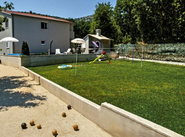 Kurtaxe ist im Preis inbegriffen.Unsere Gäste haben einen privaten Pool, einen Raum mit Fitnessgeräten, im Freien, traditionellen Grillplatz, Spielplatz für Bowling und Liegewiese mit Schaukel. Bettwäsche und Handtücher sind ebenfalls enthalten. Dies ist eine ausgezeichnete Wahl für Familien, Abenteurer und Gruppen von Freunden, weil die Lage ist in einer ruhigen Umgebung und ist gut ausgestattet und bietet viel Platz und ist in der Nähe der Stadt Omis (5km), Fluss Cetiina, wo Sie ausprobieren können, Rafting, Seilrutsche, Canyoning, kostenlos Klettern oder einfach nur genießen Sie die schöne Umgebung, die eine Flussschlucht bietet. Die Stadt Split mit seiner Altstadt, UNESCO Diokletian-Palast, die Sie sehen, ist nur 21 Kilometer entfernt, oder eine halbe Stunde, kann dies immer für jeden Geschmack etwas zu finden.