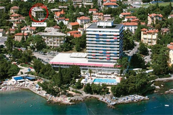 Guten Tag, liebe Gäste. Wir bieten Ihnen luxuriös eingerichtete Wohnung, im Zentrum von Opatija, nur 200 Meter vom Meer entfernt. Die Wohnung befindet sich im Erdgeschoss der Villa Emilia befindet. Geeignet für Behinderte und Kleinkinder. 200 Meter von Strand für Kinder. Vor dem Haus ist ein Garten, wo Sie Gartenmöbel. Die Wohnung ist ausgestattet mit: Herd, Kühlschrank mit Gefrierfach, Geschirrspüler, Mikrowelle, Kaffeemaschine, Klimaanlage, Waschmaschine. Die Kapazität ist 4 Personen, mit zwei getrennten Räumen.