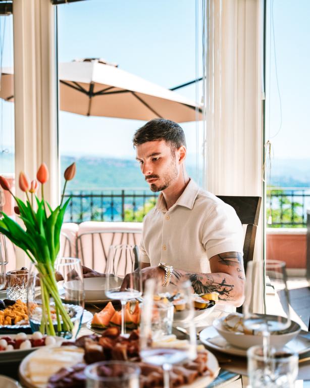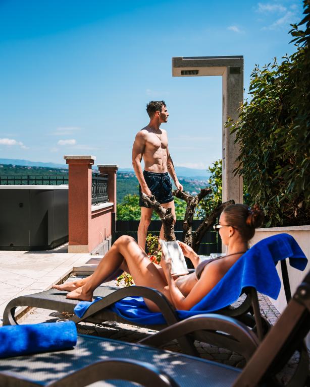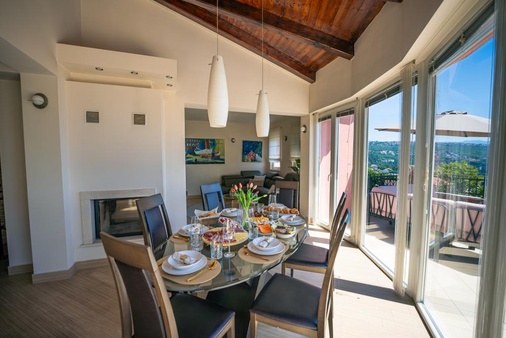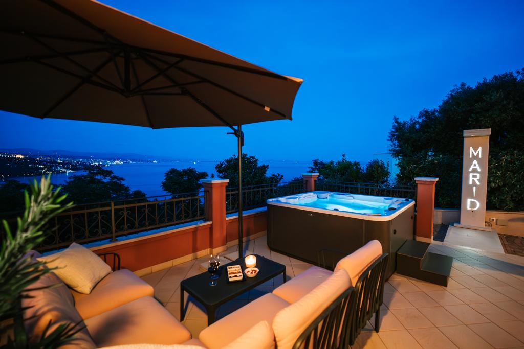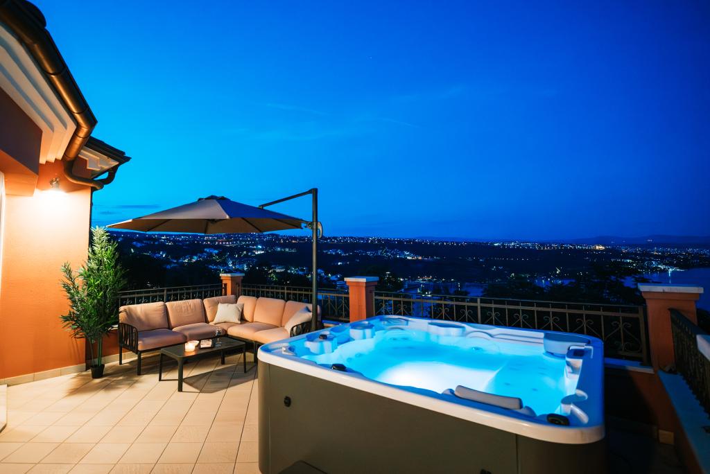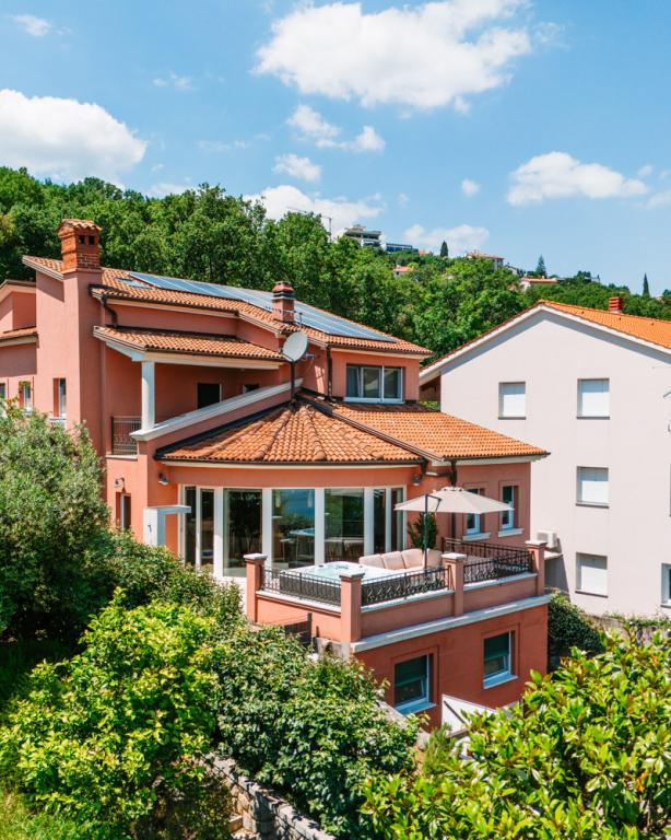 Ein wunderschönes und modernes kleines Juwel an der Riviera von Opatija. Das Haus wurde erst kürzlich gebaut, daher ist alles fast wie neu. Die Inneneinrichtung ist sehr schön und wurde von meiner Frau Alexandra, einer Innenarchitektin, entworfen. Eines der erstaunlichsten Dinge in diesem Haus ist der 180-Grad-Blick von der Terrasse auf die Kvarner-Bucht, die istrische Küste und die Inseln Krk und Cres. Einfach atemberaubend. Ein Foto kann die Schönheit der Aussicht nicht wiedergeben. Sonnenaufgänge und Sonnenuntergänge sind etwas Besonderes und Abendessen auf der Terrasse gehören zu den schönsten Momenten des Tages. Sie werden wie ein Baby schlafen, denn nachts ist es sehr ruhig und angenehm und nachts weht eine leichte Brise vom Meer. Alle Zimmer sind klimatisiert. Erwähnenswert sind auch die super bequemen Betten in allen Zimmern sowie der Innen- und Außen-Whirlpool und die Dusche auf der Terrasse mit wunderschöner Aussicht. Die Riviera von Opatija ist für ihr mikromediterranes Klima bekannt. Die Städte der Riviera erstrecken sich vom Fischerdorf Volosko, das nur wenige Gehminuten vom Haus entfernt liegt, bis zum wunderschönen Opatija, das zu Fuß erreichbar ist. Eines der Dinge, die Sie unbedingt genießen sollten, ist die Promenade entlang des Lungomare-Meeres, die etwa 15 km lang ist. Entlang der Promenade finden Sie zahlreiche kleine Strände und kleine Badebuchten, durchsetzt mit prächtigen Palästen aus der Zeit Österreich-Ungarns. Das Haus liegt etwa 400 m von mehreren Stränden in Volosko entfernt. Das Wasser ist sehr sauber und türkisblau. Viele Orte an der Riviera sind nur eine kurze Autofahrt entfernt und bieten viele gastronomische Erlebnisse. Die Lebensmittelgeschäfte in der Nähe bieten eine große Auswahl an Lebensmitteln, darunter großartiges Brot, lokale Weine, Obst- und Gemüsesorten und Fleisch. Top-Restaurants sind ebenfalls nur wenige Gehminuten vom Haus entfernt. Das Essen ist fantastisch, vor allem die Fischauswahl. In d