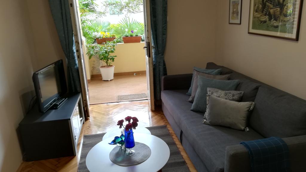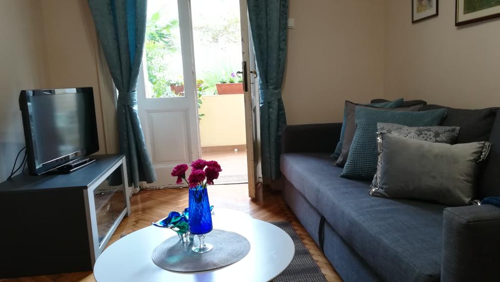 Charmantes Apartment in einer alten Villa im Zentrum von Opatija. Das Apartment liegt nur 300 Meter vom Meer und Strand entfernt. Es ist sehr geräumig und misst 58 Quadratmeter. Vom überdachten Balkon mit Meerblick gelangt man auf der anderen Seite des Hauses in den Garten, wo man sich ebenfalls aufhalten kann und der mit Tisch und Stühlen ausgestattet ist. Das Apartment gehört zu den wenigen im Zentrum von Opatija mit kostenlosen Privatparkplätzen. Der Markt von Opatija ist 400 Meter und der Spar-Supermarkt 150 Meter entfernt. Das Apartment bietet Platz für maximal 5 Personen. Das Schlafzimmer verfügt über ein großes Doppelbett und ein Einzelbett. Im Wohnzimmer befindet sich eine Schlafcouch. Die Küche ist geräumig und komplett ausgestattet.
