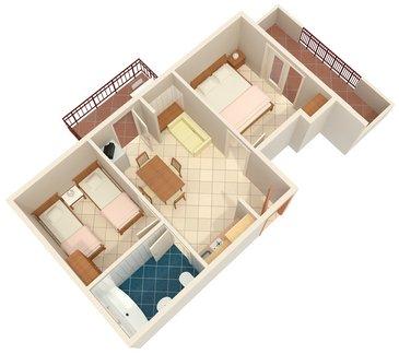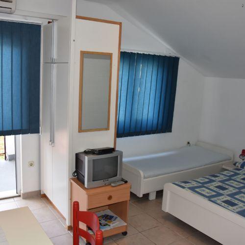 Im ersten Stock unseres Familienhauses, das einen wunderschönen Blick auf das Meer bietet, befindet sich 1 Studio-Apartment mit Doppelbett zur Miete A2. In den Apartments kann ein Zustellbett aufgestellt werden, das für Kinder bis 17 Jahre kostenfrei ist. Im zweiten Stock befinden sich drei weitere Wohnungen. Ein Vierbettapartment A4 mit zwei Schlafzimmern und zwei Zweibettstudioapartments A5 und A6. In den Wohnungen A4 und A6 können Sie ein Zustellbett hinzufügen, das für Kinder bis 17 Jahre kostenlos ist. Alle Wohnungen verfügen über einen Balkon mit Tisch und Stühlen in ausreichender Größe für die Anzahl der Personen. Die Wohnungen sind mit 3 Sternen kategorisiert. Wenn Sie buchen möchten...