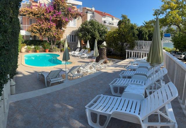 Die „Villa Melita“ liegt direkt am Meer an einer ruhigen Promenade. Dieser Ort ist ideal für alle, die eine Auszeit suchen. Das Haus verfügt über einen wunderschönen Garten mit mediterraner Vegetation und einem 32 m² großen Swimmingpool mit 14 Sonnenliegen. Ein Grill steht Ihnen ebenfalls zur Verfügung. Privatparkplätze für jedes Apartment befinden sich in unmittelbarer Nähe. Alle Apartments sind mit Klimaanlage, kostenfreiem WLAN, Sat-TV, einer voll ausgestatteten Küche, einem Badezimmer und einer privaten Terrasse ausgestattet. Handtücher und Bettwäsche sind inklusive. In fußläufiger Entfernung finden Sie zahlreiche Restaurants, Cafés, Geschäfte und Bäckereien für den täglichen Bedarf. Der Hauptstrand von Trstenica ist nur 40 Meter entfernt.