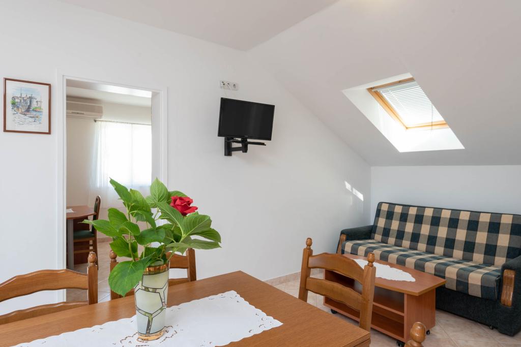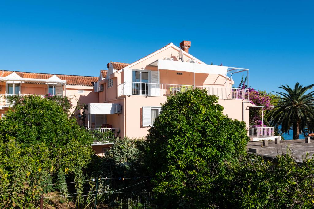 Die „Villa Melita“ liegt direkt am Meer an einer ruhigen Promenade. Dieser Ort ist ideal für alle, die eine Auszeit suchen. Das Haus verfügt über einen wunderschönen Garten mit mediterraner Vegetation und einem Swimmingpool mit Liegestühlen. Ein Grill steht Ihnen ebenfalls zur Verfügung. Unsere privaten Parkplätze befinden sich in unmittelbarer Nähe. Alle unsere Apartments sind mit Klimaanlage, kostenfreiem WLAN, Sat-TV, einer voll ausgestatteten Küche, einem Badezimmer und einer privaten Terrasse ausgestattet. Handtücher und Bettwäsche sind inklusive. In fußläufiger Entfernung finden Sie zahlreiche Restaurants, Cafés, Geschäfte und Bäckereien für den täglichen Bedarf. Und das Beste: Der Hauptstrand von Trstenica ist nur 40 Meter entfernt.