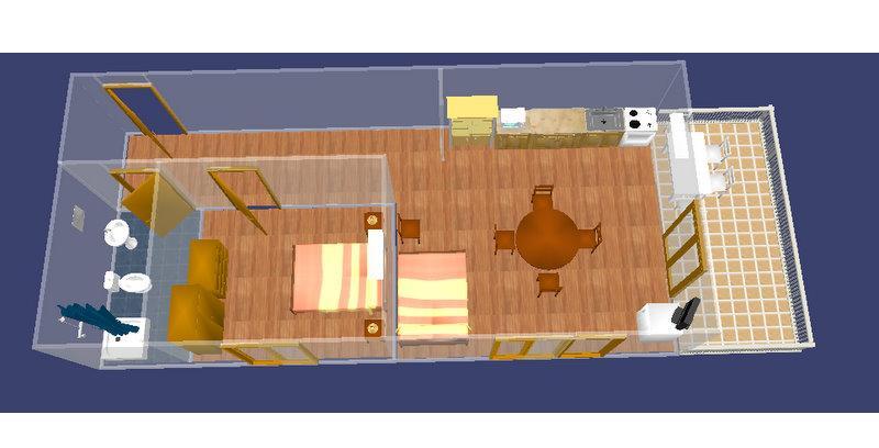 Studio-Apartment für zwei Personen mit Zusatzbett (30 m2)