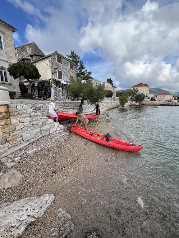 86 STUFEN zum Strand – Steinstufen hinunter, neben Oliven- und Zitronenbäumen und mit Blick auf das blaue Meer – Strandliebhaber werden es genießen. AUSFLÜGE Korčula, Mljet und die umliegenden Inseln sind leicht zu erreichen (der Hafen von Orebić ist nur 250 m entfernt). Genießen Sie die Aromen der mediterranen Küche und des italienischen Dolce Vita (alles im Umkreis von 300 Metern). – GRATIS: Seekajaks – Stand Up Paddle Boards – Sonnenschirme und Strandmatten. – WILLKOMMEN im ZENTRUM von OREBIĆ und verpassen Sie nicht die Gelegenheit für einen perfekten Urlaub. UND DA BILDER mehr sagen als Worte – SCHAUEN SIE SIE SICH AN und urteilen Sie selbst. – WOHNUNGEN Voll klimatisiert – WLAN – SAT-TV – Küche – Badezimmer mit Dusche – Privatparkplatz – Balkone mit Markisen – Bettwäsche und Handtücher GRILL Unser Grillbereich und die Gartenterrasse, umgeben von Zitronenbäumen, sind voll ausgestattet und ein großartiger Ort, wo Sie Fisch oder gegrilltes Fleisch zubereiten können.