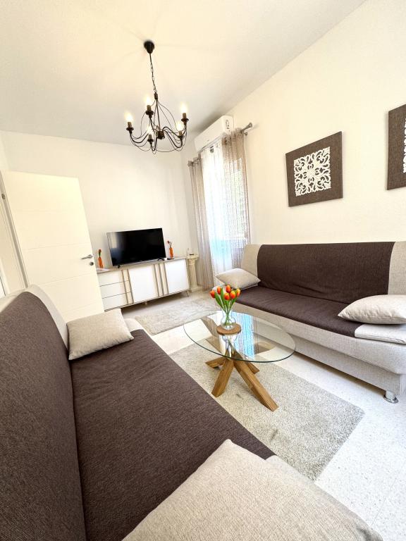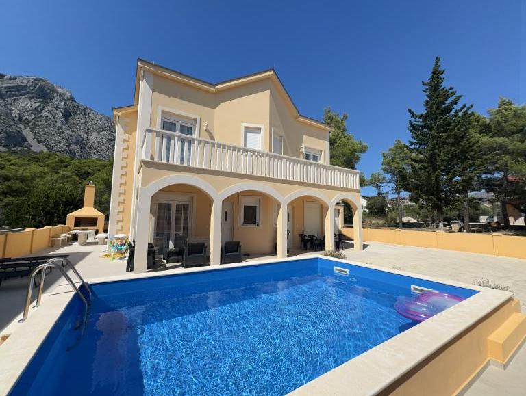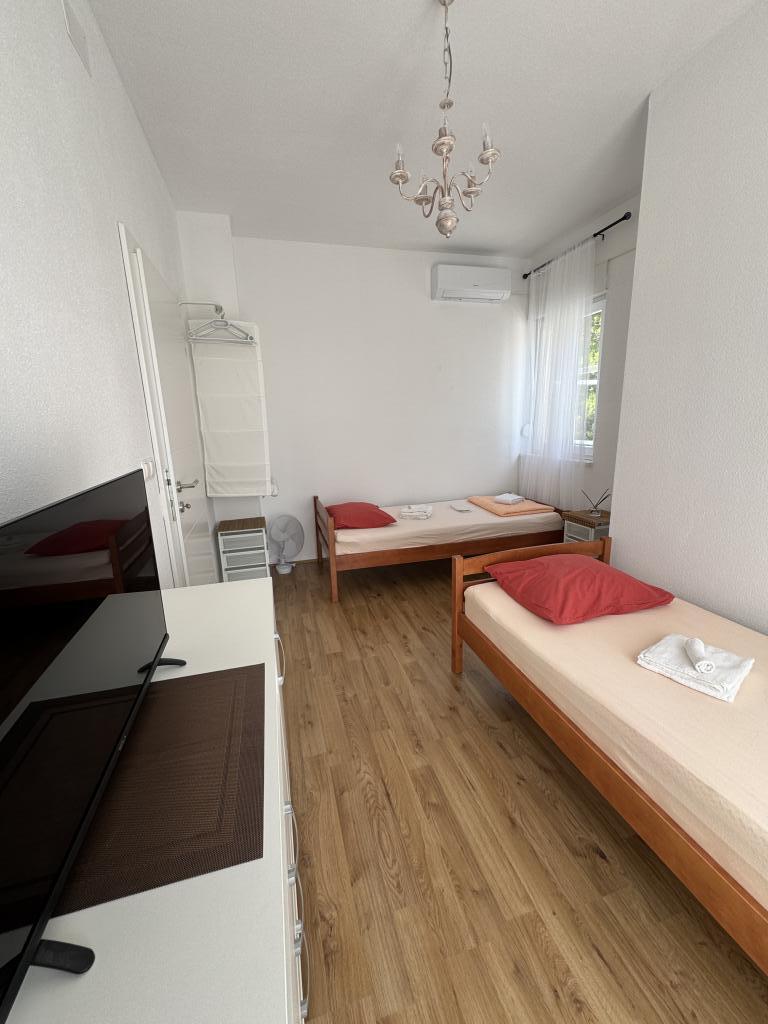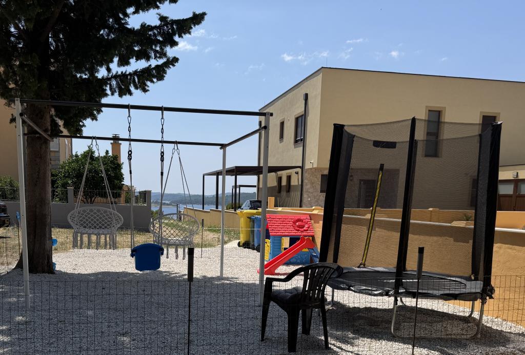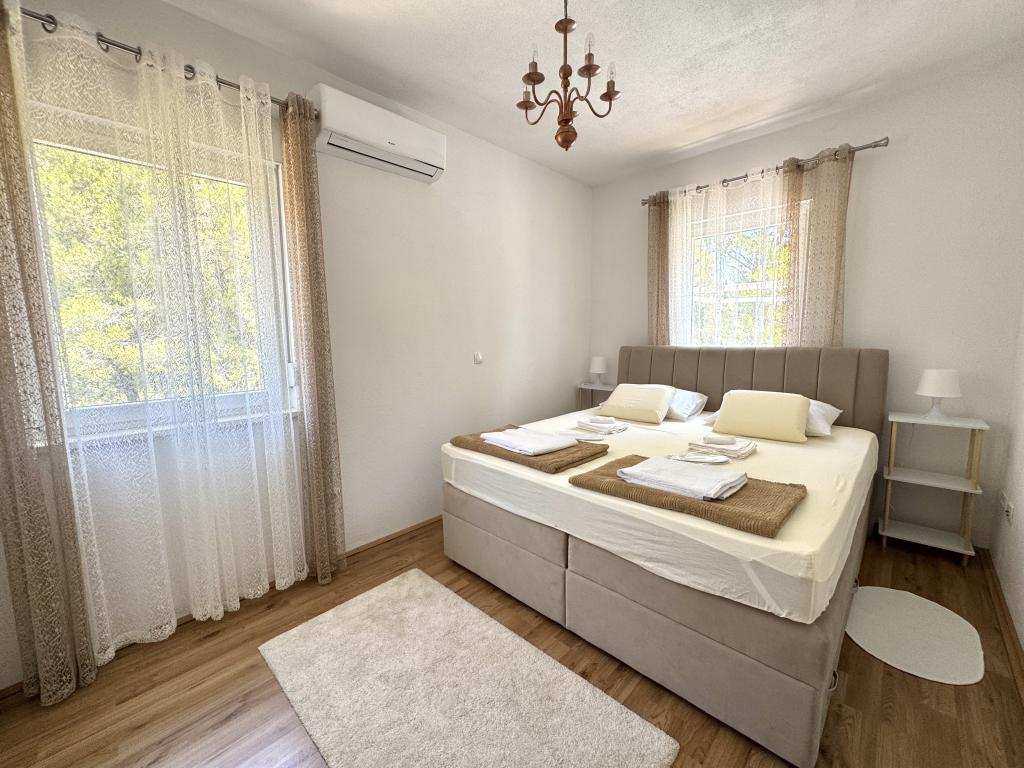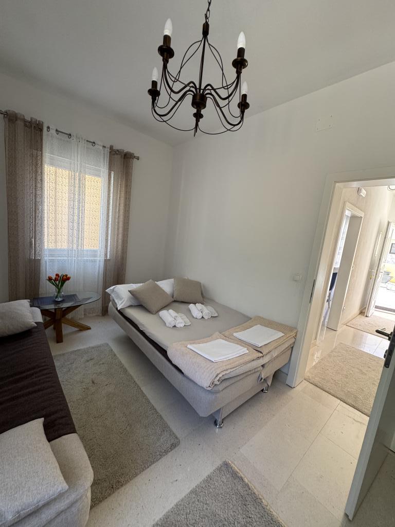 Voll ausgestattete Villa mit Pool und Garten in Strandnähe. Da Sie die einzigen Gäste sind, stehen Ihnen alle Annehmlichkeiten exklusiv und uneingeschränkt zur Verfügung. Die Wohneinheit verfügt über einen separaten Eingang. Im Erdgeschoss befinden sich ein Wohnzimmer, eine Wohnküche und ein WC. Im Obergeschoss befinden sich zwei Schlafzimmer und ein Badezimmer. Das Hauptschlafzimmer ist mit einem 200x200 cm großen Boxspringbett ausgestattet. Das zweite Schlafzimmer bietet zwei Einzelbetten sowie ein Zustellbett für maximal zwei Personen und Zugang zur Terrasse mit Meer- und Korčula-Blick. Im Wohnzimmer befinden sich zwei Schlafsofas (jeweils 2x2). Die Villa verfügt über drei Klimaanlagen, zwei im Obergeschoss und eine im Erdgeschoss, jeweils in einem der Zimmer. Im Garten finden Sie Gartenmöbel, Liegestühle, Sonnenschirme, einen Grill, einen Pool mit Whirlpool sowie ein Spielzimmer für Kinder. Falls Sie mit dem Auto anreisen, stehen Ihnen auf dem angrenzenden, ebenfalls zum Anwesen gehörenden Grundstück mehrere private Parkplätze zur Verfügung. Facebook: Villa Sunshine Orebic