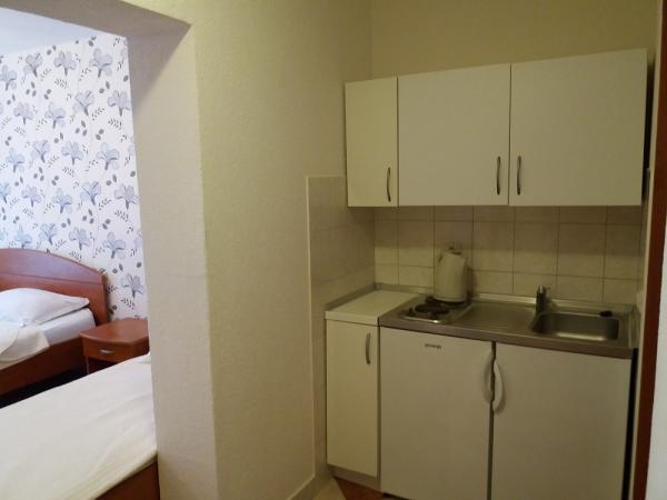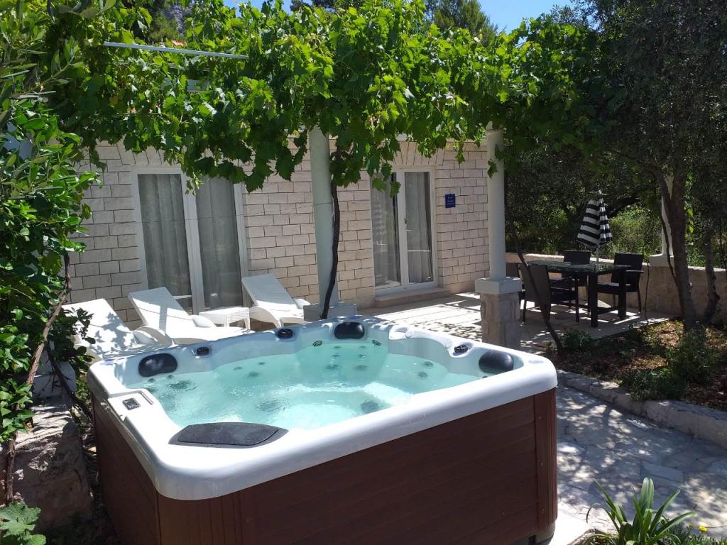 Willkommen in einem modern eingerichteten Bungalow mit Massagepool oder Familienapartment in Perni auf Peljesac. Der Bungalow besteht aus einem Schlafzimmer, einem Bad und einer Kombination aus Küche und Wohnzimmer. Der Bungalow verfügt außerdem über eine große private Terrasse mit einem Massagepool und Meerblick mit Blick auf die Insel Korcula. Der Bungalow ist komplett ausgestattet mit allem, was Sie für einen idealen Urlaub benötigen (Spülmaschine, Waschmaschine, Kaffeemaschine, kostenloses Internet). Gleich die Straße hinunter finden Sie sich am Strand neben dem Restaurant, wo Sie Fischspezialitäten genießen können. Der Strand befindet sich 50 m vom Bungalow und 20 m von den Apartments entfernt. Das Obitelski apartman befindet sich direkt am Strand - 20 m mit Blick auf den Hügel von Sv. Elia. Die Wohnung verfügt über zwei Schlafzimmer, ein Badezimmer und eine Miniküche, kostenloses Internet, Parkplätze und eine große Terrasse. Es befindet sich im 1. Stock. Es ist idyllisch für eine Familie mit drei Kindern.