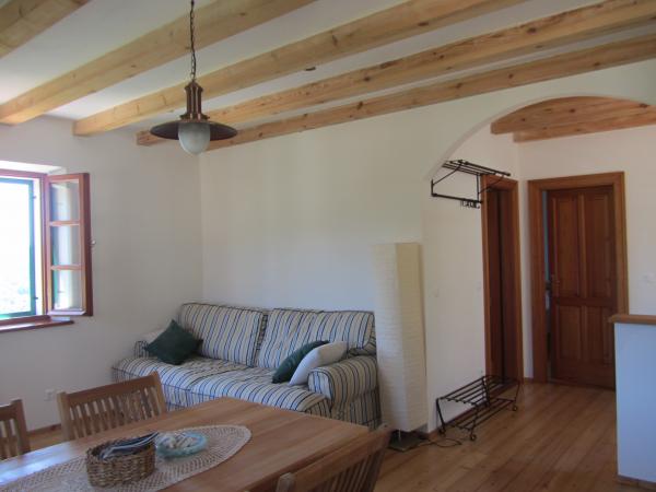 Vor kurzem renoviert traditionellen Steinhaus in Ethno-Dorf Goveđari im Herzen des Nationalparks. Das Haus besteht aus zwei Wohnungen mit separaten Eingängen und Terrassen haben und selbstständig zu arbeiten und kann auch als komplettes Haus für mehr Personen gemietet werden. Unterkunft Nr. 1 ist 60m2 mit Terrasse von 30m2, voll mit allem, was für einen angenehmen und komfortablen Aufenthalt für 4 Personen (2 Personen auf dem Sofa im Wohnzimmer) eingerichtet. Unterkunft Nr. 2 ist 90m2 mit Terrasse von 60m2, mit zwei separaten Schlafzimmern und einem offenen Grill auf der Terrasse. Komfortabel für 4 Personen. Beide Wohnungen sind mit allem, was für einen angenehmen Aufenthalt ausgestattet: Herd, Backofen, Kühlschrank, Gefrierschrank, Toaster, Wasserkocher, Waschmaschine, Heizung, Klimaanlage, LCD TV, DVD, WLAN-Internetzugang ... Die Anlage befindet sich nur 10 Gehminuten Pfad durch den Pinienwald von Babas Haus und der Großen Seen, Wander- und Bike Gebieten. Das Dorf ist Goveđari kleinen und malerischen Ort ideal für einen ruhigen Urlaub.