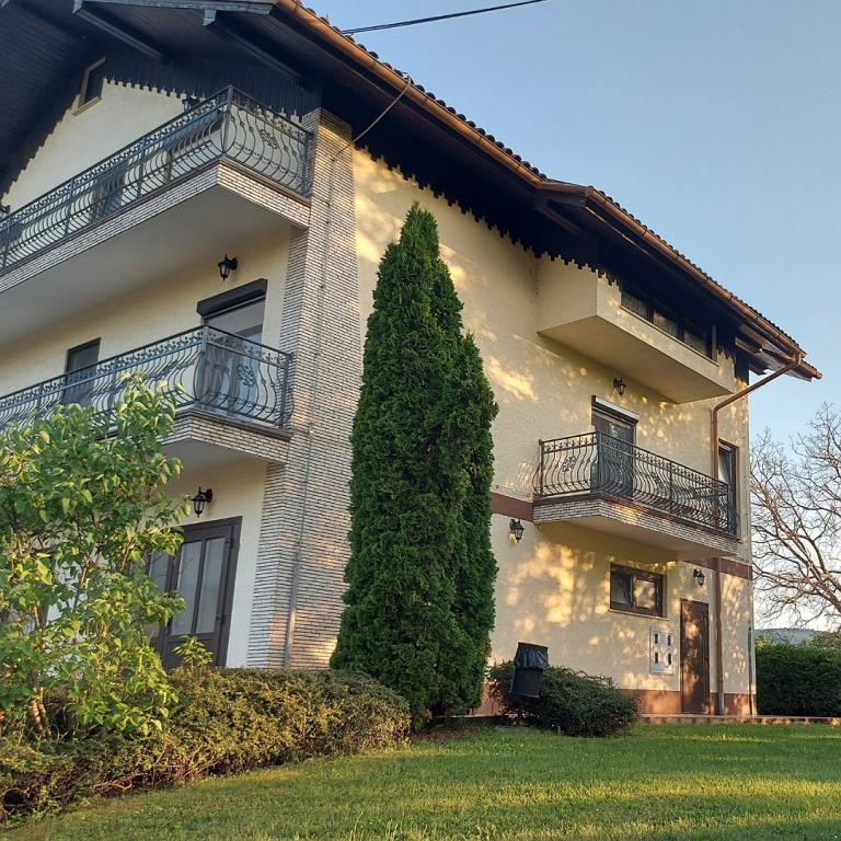 Die Wohnungen im Haus liegen in der hügeligen Landschaft der ländlichen Umgebung auf 265 m über dem Meeresspiegel, von wo aus sich ein grüner Fernblick auf das Žumberačko-Gebirge erstreckt. Sie sind nur wenige Kilometer vom Zentrum von Ozalj entfernt, wo Besucher historische und natürliche Schönheiten erkunden und sich in den heißen Sommermonaten im Schwimmbad der Stadt erfrischen können. Die Landschaft ist ideal für Urlauber, Ausflügler, Erholungssuchende, Spaziergänge usw. Sie sind etwa 20 Kilometer von der Stadt Karlovac entfernt und auch die slowenische Grenze ist mit etwa 13 Kilometern ganz in der Nähe. Die Wohnungen verfügen über großzügige Terrassen mit Ausblick sowie Balkone, ein Kinderspielplatz ist ebenfalls vorhanden.