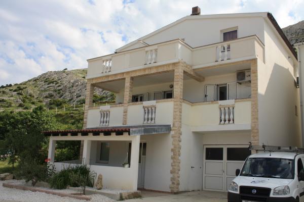 Sind vier neue Wohnungen Alaburic in Pag, nur 200 Meter vom Meer entfernt. Zum Zentrum der Stadt mit dem Auto 3 Minuten und nach Novalja (Zrce) beträgt 25 Minuten. Wohnung 1 im Erdgeschoss verfügt über zwei Schlafzimmer, Bad, Küche und Esszimmer als Teil einer Terrasse mit Garten. Wohnung 2 im ersten Stock (a) verfügt über ein Schlafzimmer, Bad, Küche und Essbereich im Balkon und Wohnung 3 im ersten Stock verfügt über zwei Schlafzimmer, Bad, Küche und Essbereich im großen Balkon. Wohnung 4 ist auf dem Boden. Es hat ein Schlafzimmer, Badezimmer und Küche teilweise verliku Terrasse. Die Suiten bieten einen schönen Blick auf das Meer und die Bucht von Pag. Auf Wunsch können Sie das ganze Haus mieten. Das Gebäude verfügt über eine authentische dalmatinische Taverne, die für angenehme Gesellschaft genutzt werden kann.