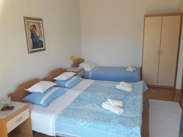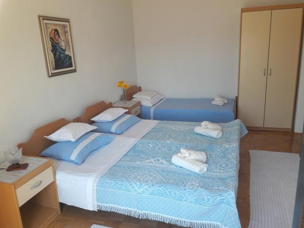 Moderne, geräumige Apartments, die in einem ruhigen Ort in der Stadt Pag. Nicht weit vom Zentrum entfernt und geschützt vom Lärm und Menschenmassen. Schöne Strände sind in der Nähe. Zwei Wohnungen befinden sich im Erdgeschoss (A4 1), und eine auf dem Boden (A2 1). Apartments A4 bestehen aus Küche, Bad, 2 Schlafzimmer und Wohnung A2 von Küche, Bad und Schlafzimmer (die Wohnung verfügt über Klimaanlage). Die Wohnungen verfügen über eine eigene große Terrasse und einen separaten Eingang. Alle Wohnungen verfügen über TV und Internet, Parkplatz vor der Sonne geschützt. Im Garten mit Möbeln und Grill.