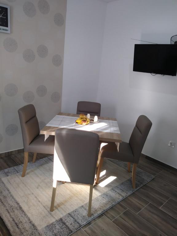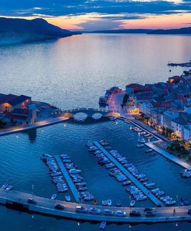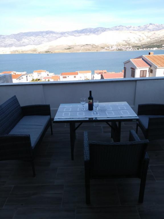 Komplett und modern eingerichtete Wohnung in einer ruhigen Gegend der Stadt Pag. Schöne Aussicht von der großen Terrasse auf das Meer und Velebit. Die Küche ist so modern wie die ganze Wohnung. Der Preis beinhaltet Klimaanlage, WLAN, Parkplatz, Waschmaschine, Grill im Hof und Kurtaxe. Der Strand ist 250 m entfernt und das Stadtzentrum 1500 m.