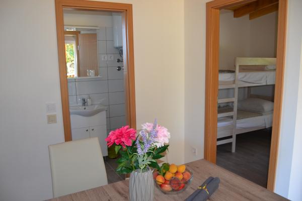 Grün, mildes Klima, saubere Luft, schöner Meerblick, das ist etwas, das jeder in diesem Ort liebt. Neu zwei Wohnungen in ruhiger Lage gebaut. Wir bieten ein Doppelzimmer mit Bad, Schlafzimmer mit zwei Einzelbetten, die, Küche mit Essbereich und ein Sofa und ein Badezimmer angeschlossen werden können. An einer schönen großen Terrasse ist für 4 Personen und zwei Liegen eingestellt. Wollen Sie Ihren Urlaub verbringen, und Sie möchten Ihren Hund nehmen und wir bieten diese Möglichkeit. Alle sind willkommen in unseren kleinen, schönen, neu gebauten Wohnungen. Klimaanlage, Bettwäsche, Handtücher und WiFi inbegriffen.