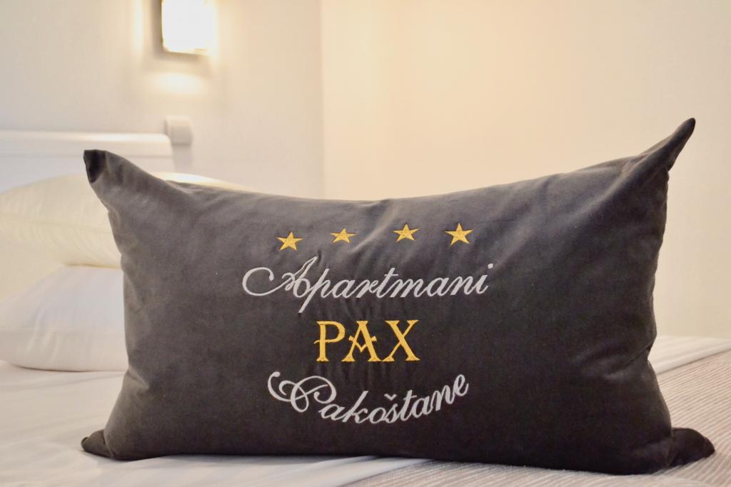 Die PAX-Apartments befinden sich in einem ruhigen Teil von Pakoštane. Die modern eingerichteten 4-Sterne-Appartements liegen im ersten Stock und sind 68m² (mit Balkon) bzw. 48m² (mit Terrasse) groß und verfügen über einen separaten Eingang. Sie verfügen über ein Schlafzimmer mit einem großen Doppelbett, eine voll ausgestattete Küche, ein Wohnzimmer mit einem Zustellbett und ein Badezimmer mit Dusche. Sie verfügen über alles, was eine moderne Wohnung benötigt, um dem Gast den angenehmsten Aufenthalt darin zu ermöglichen. Sie sind mit Bettwäsche, Handtüchern, Klimaanlage und einem Safe ausgestattet. Die Apartments verfügen über kostenfreies WLAN, LCD-TV und Satellitenprogramme. Der Parkplatz befindet sich im Hof des Hauses. Ein Grill ist ebenfalls vorhanden. Das Zentrum, Geschäfte, Banken, Restaurants und andere gastronomische und touristische Einrichtungen sowie der Strand liegen 5 bis 10 Gehminuten vom Gebäude entfernt. Der Naturpark Vrana-See, der größte natürliche See Kroatiens,