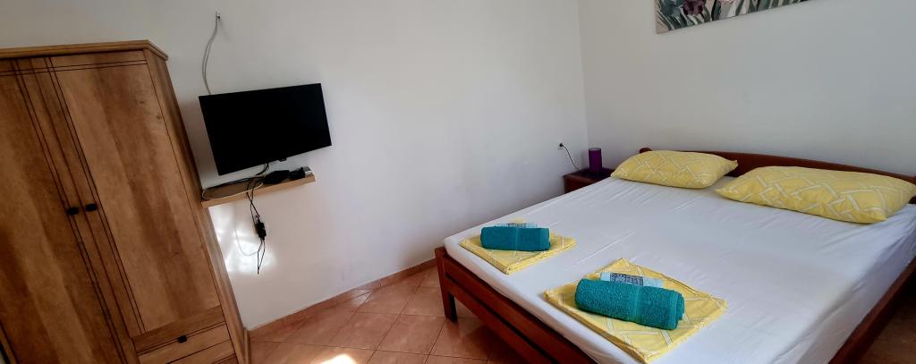 Voll ausgestattete Apartments in einer ruhigen Gegend von Pakostane, in zweiter Reihe zum Meer. Die Anlage befindet sich 5 Gehminuten vom Zentrum und 5 Gehminuten vom Strand entfernt. Begrüßungsgetränk ist im Preis inbegriffen Wir haben einen großen Parkplatz Grill im Hof Die Appartements haben große Terrassen. Bei uns haben Sie Ausflüge zu den Nationalparks Kornati, Paklenica, Krka-Wasserfälle, Plitvice organisiert. Sie können auch tauchen. Reiten. Tennisplätze, Segeln, Radfahren. Große Auswahl an Restaurants und Cafés. Das Haus ist groß und hat 6 Wohnungen.